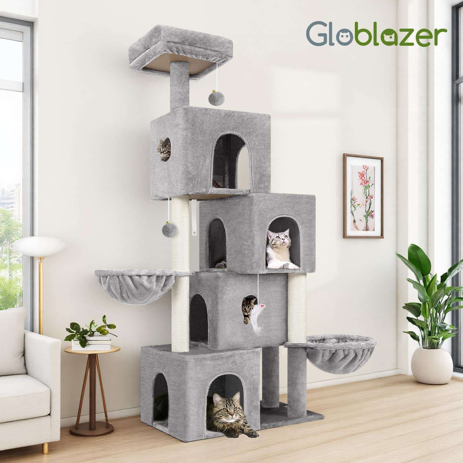 Esta torre es mucho mas que un simple arbol para gatos; funciona como una pieza de arte moderna que mejora su espacio vital con un estilo unico, ofreciendo un hogar de lujo para sus mascotas.