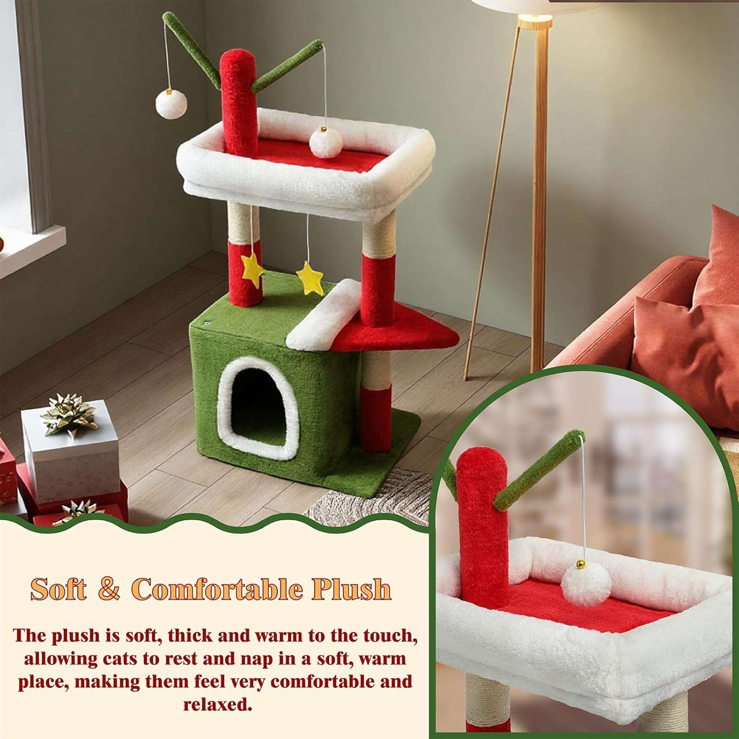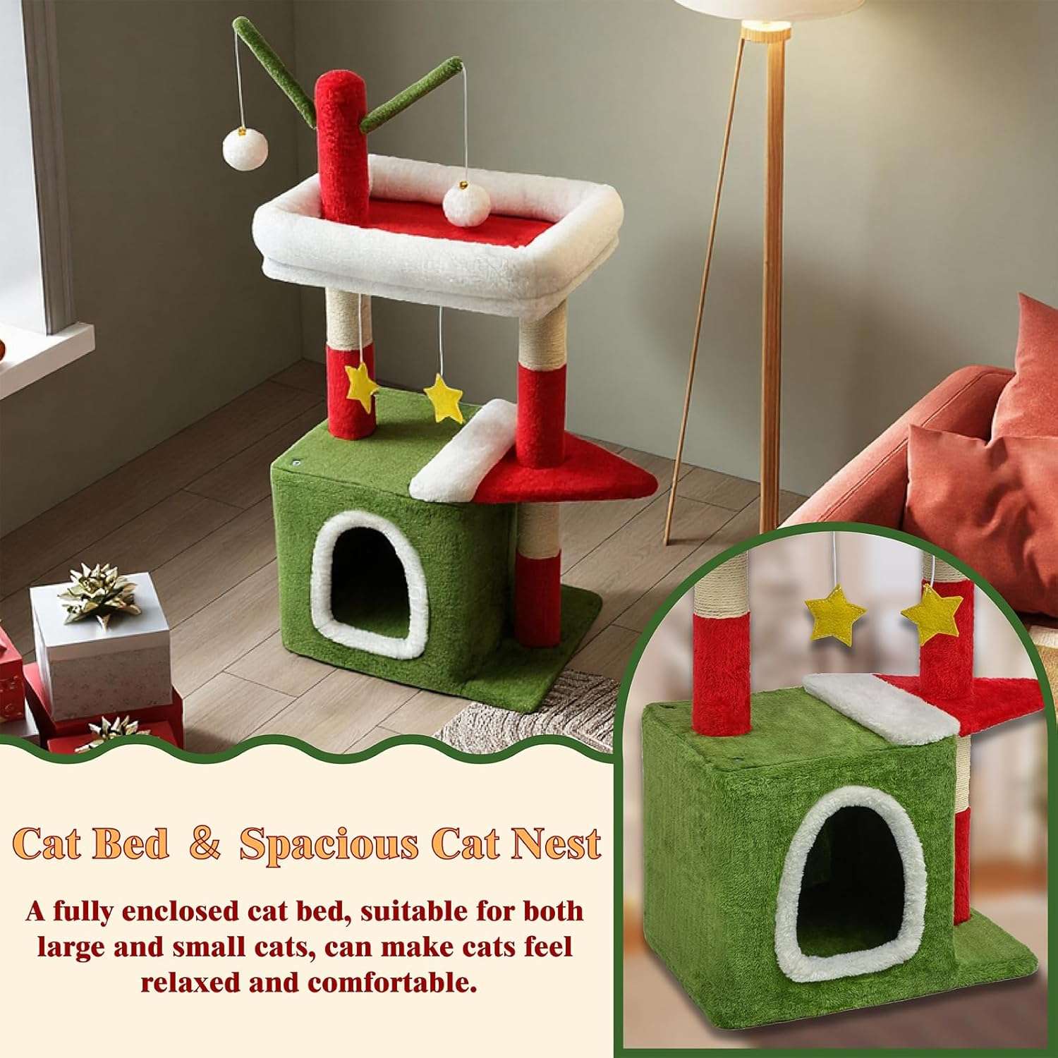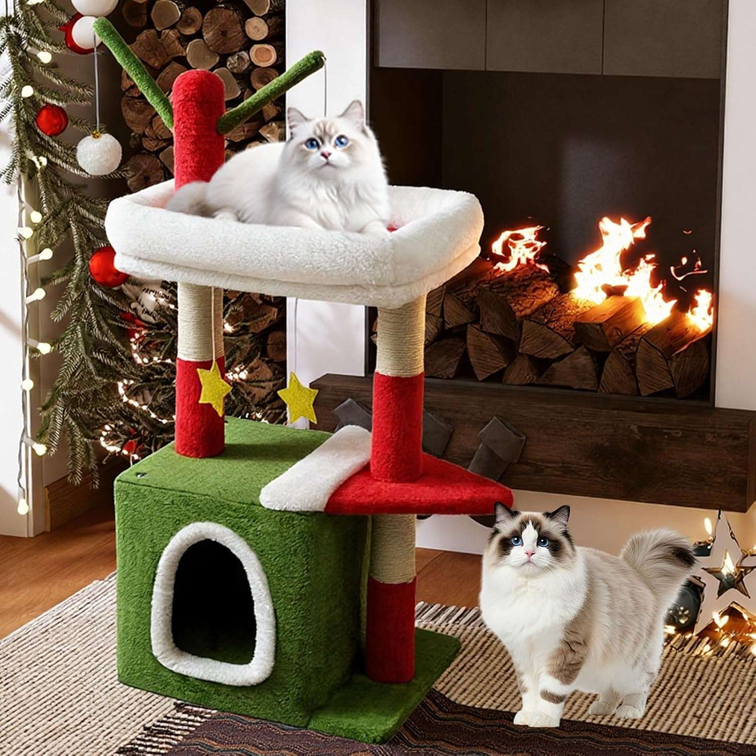 🎄 Torre de Gatos 4 en 1: Juego, Descanso y Decoración Festiva
