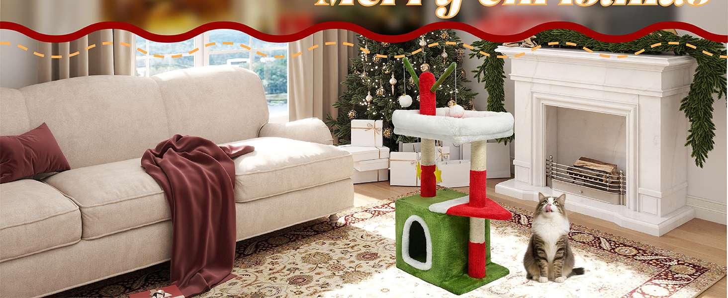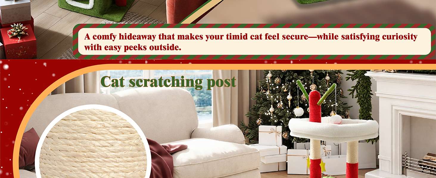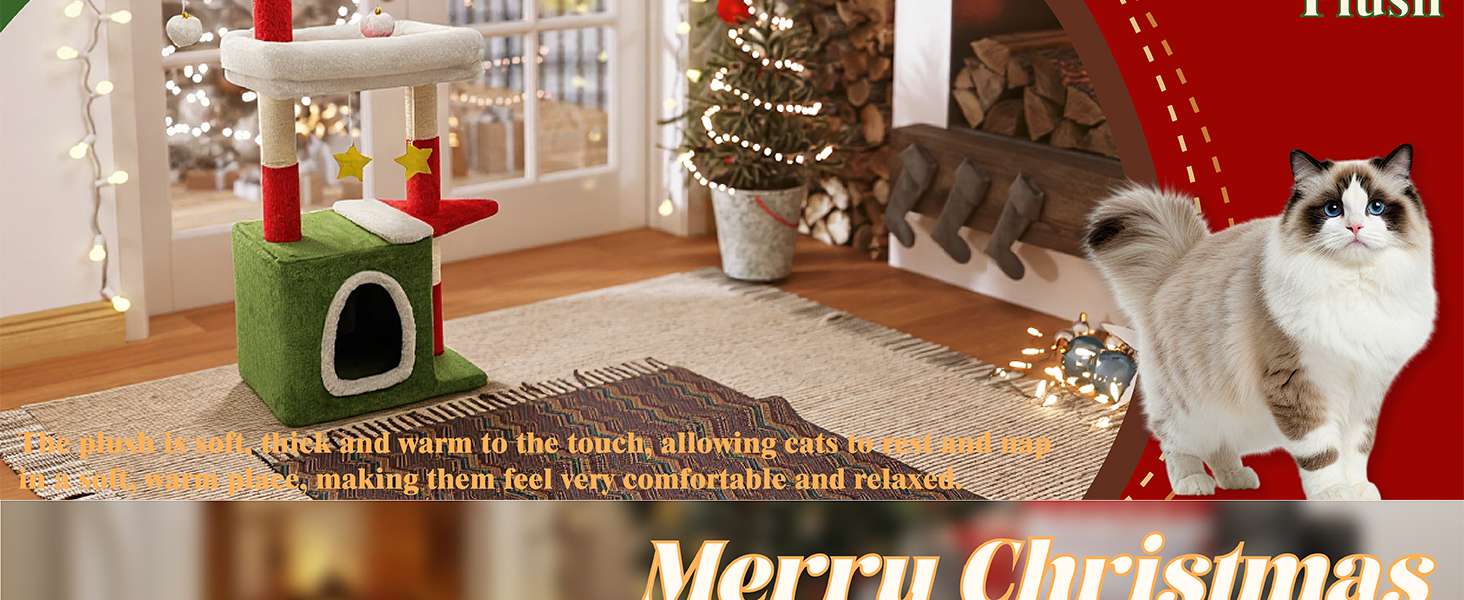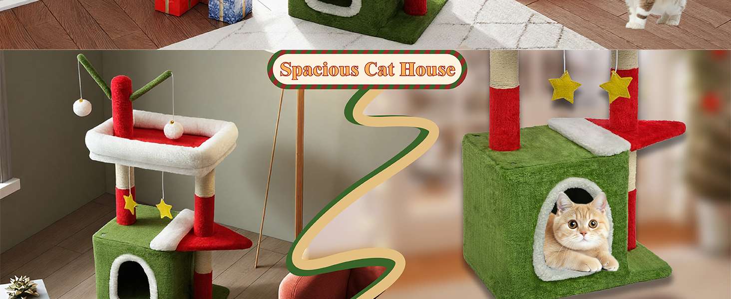 🎄 Torre de Gatos 4 en 1: Juego, Descanso y Decoración Festiva