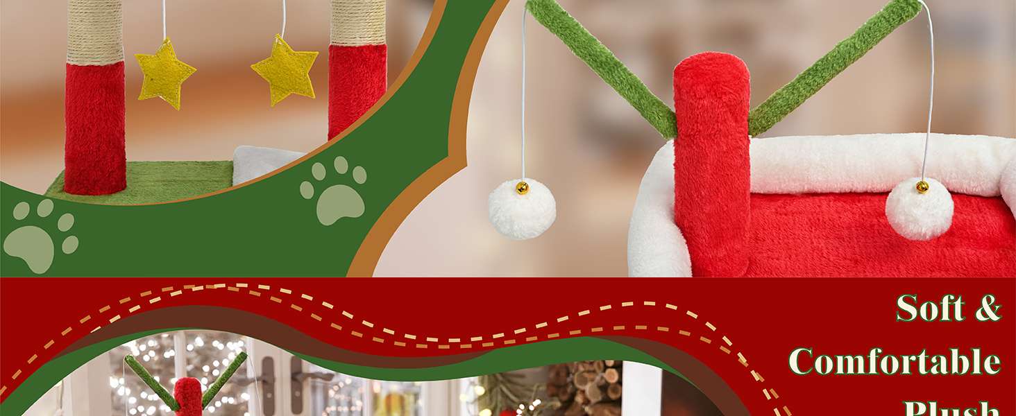Este Árbol de Navidad para Gatos de 102 cm de altura es un territorio propio y multifuncional para tu felino. Con un diseño vibrante inspirado en Cajas de Regalo y Sombreros de Papá Noel, crea un rico ambiente navideño en cualquier rincón de tu hogar.