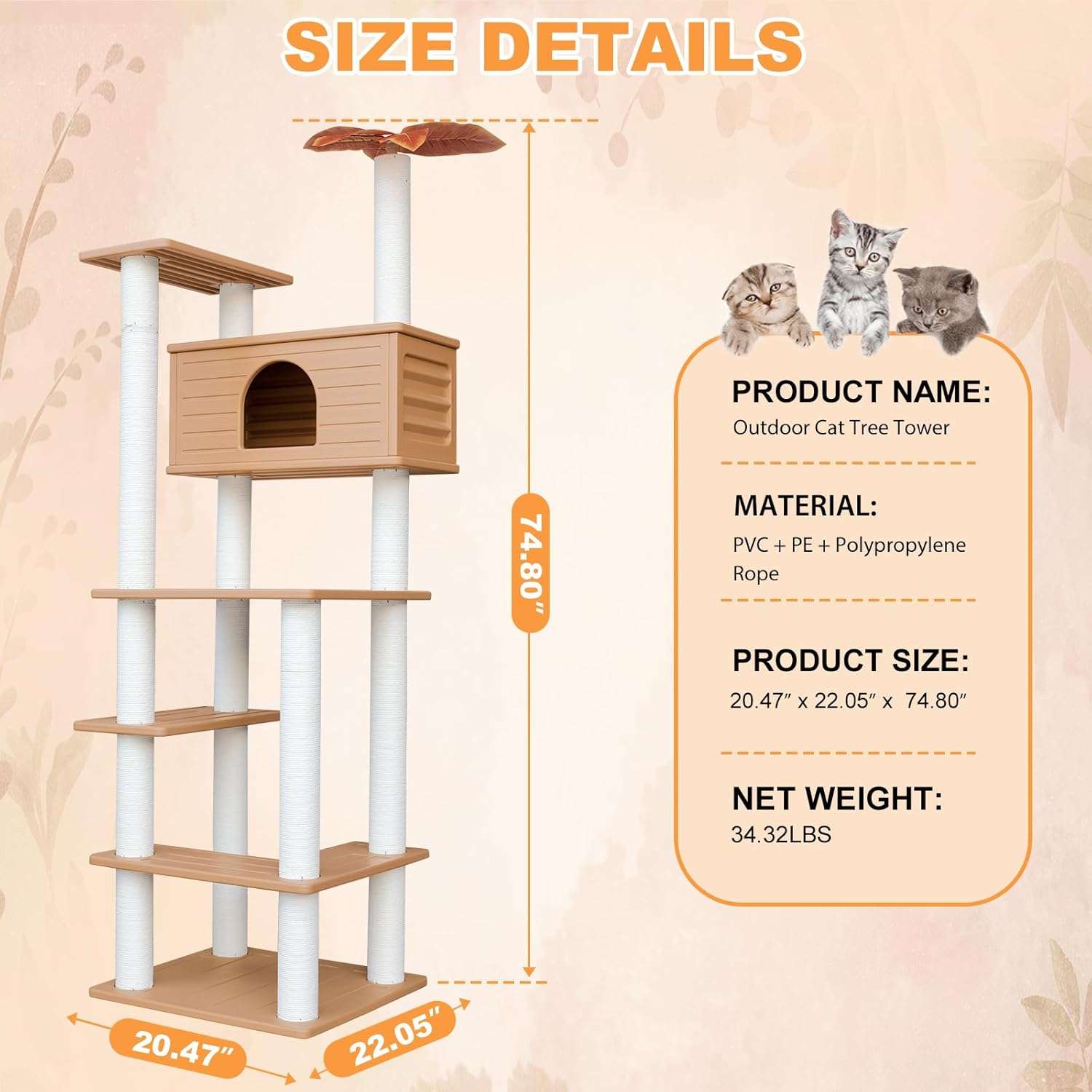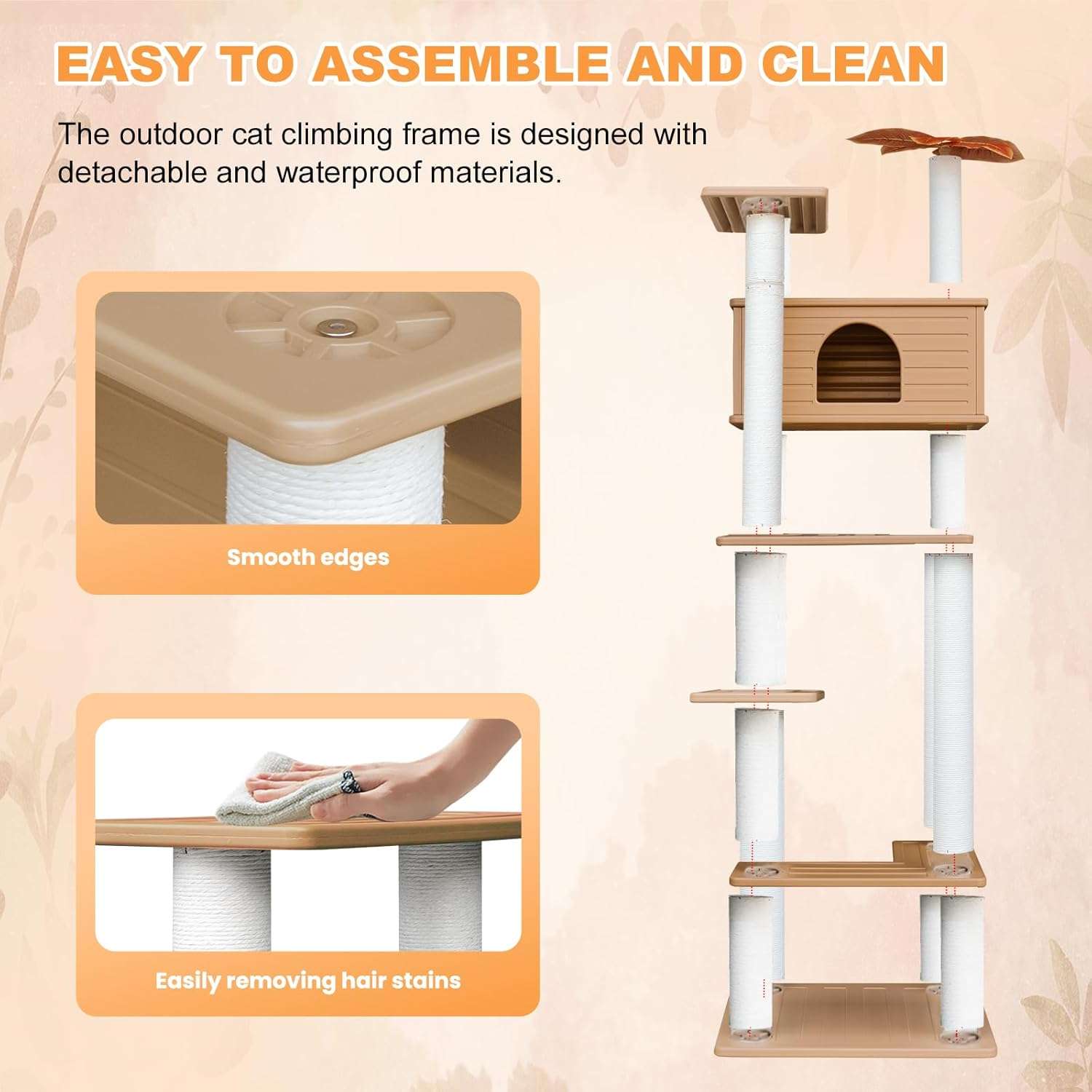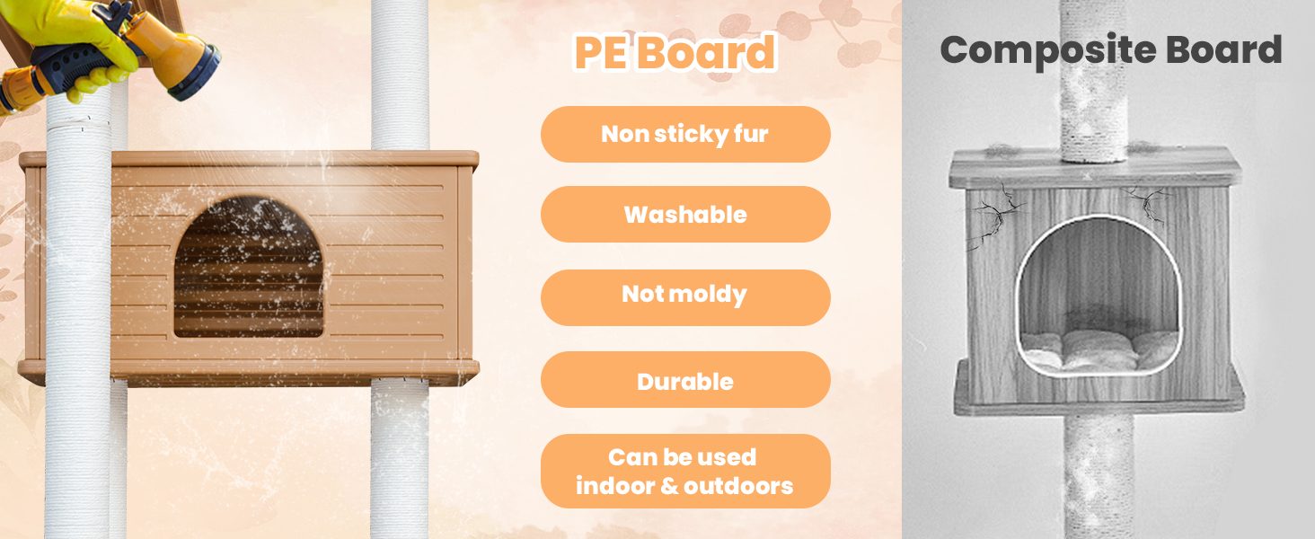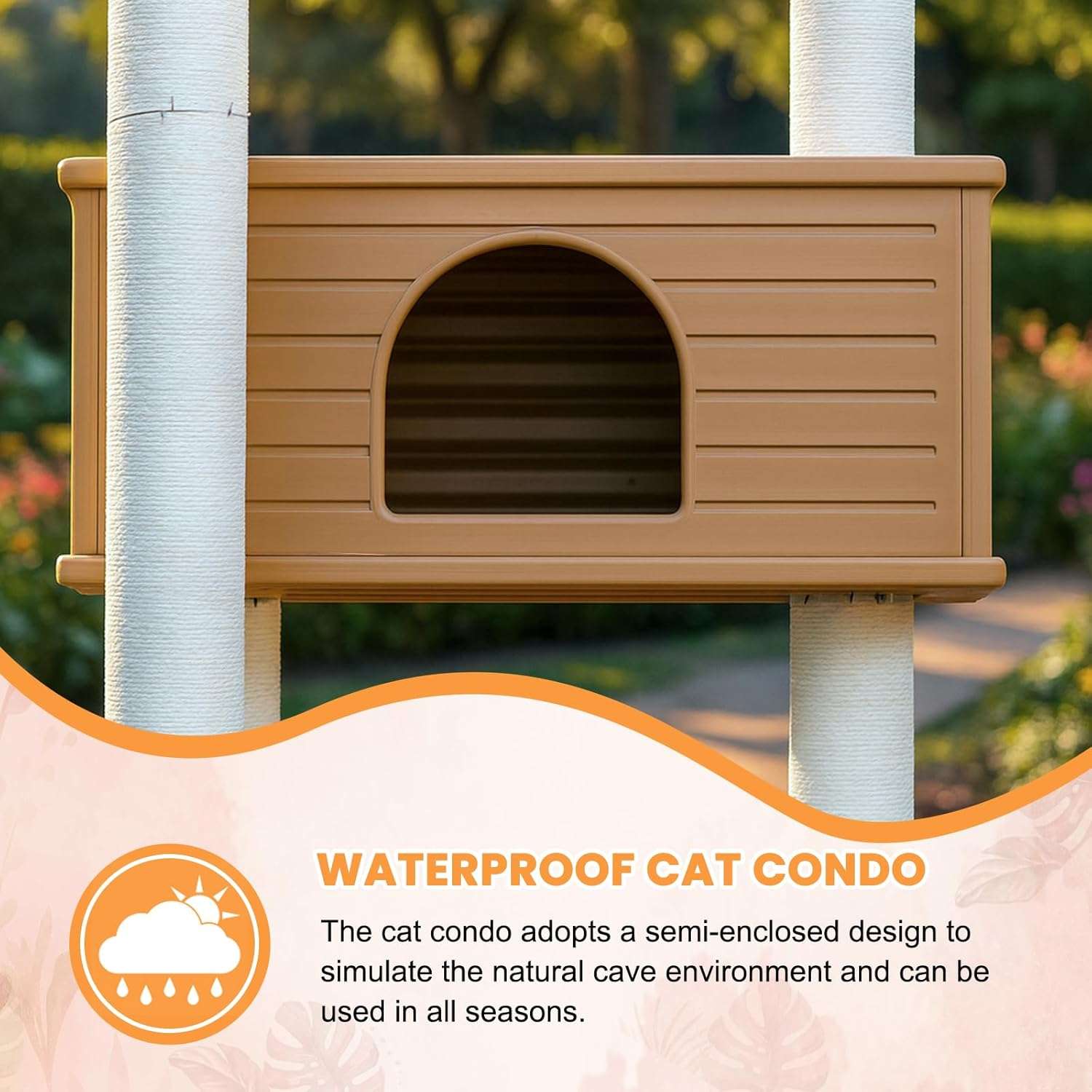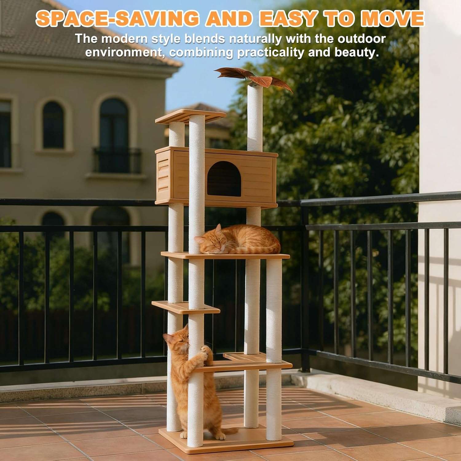 Esta torre vertical es la solución perfecta para el descanso y juego de su gato, combinando una estructura ligera con la máxima resistencia a la intemperie.