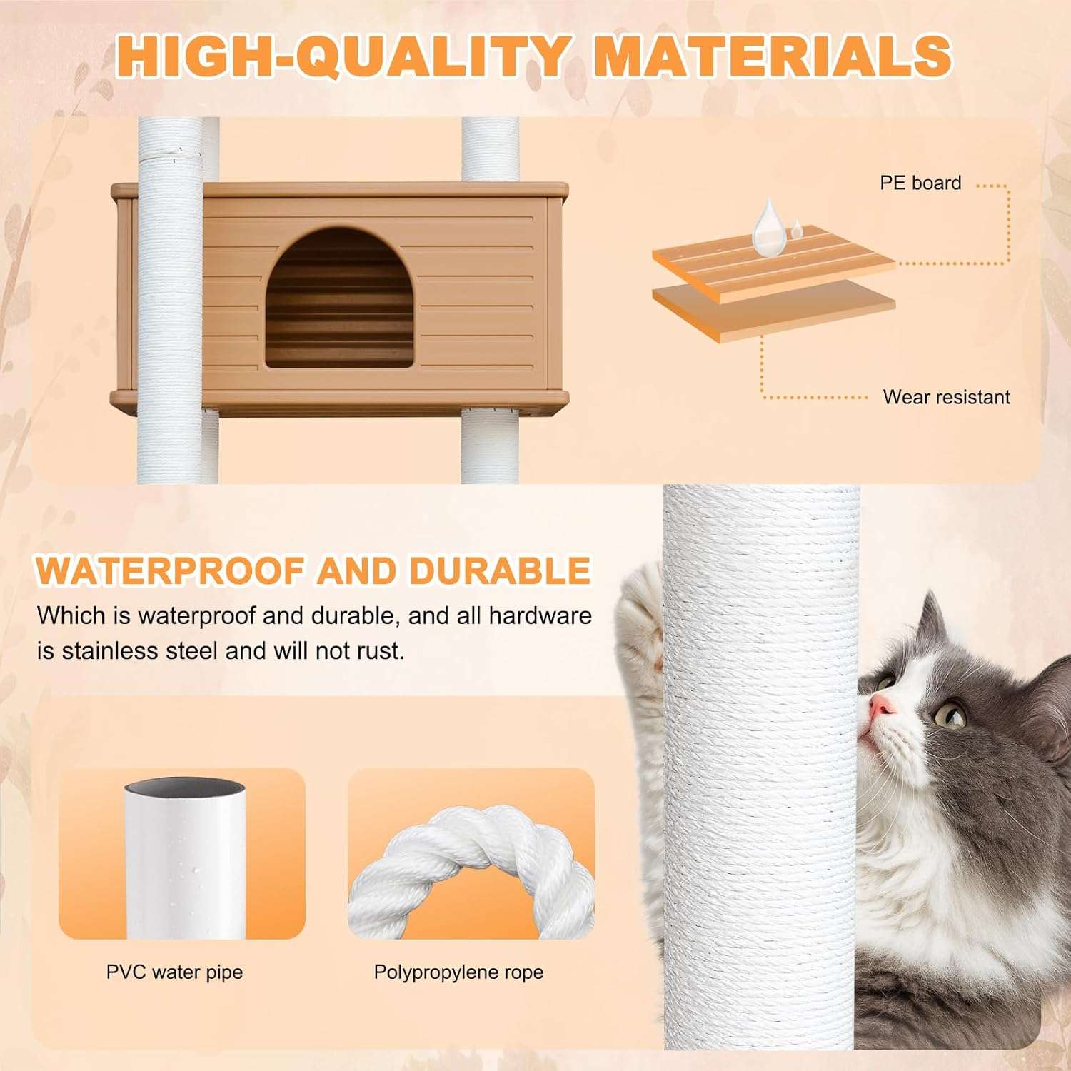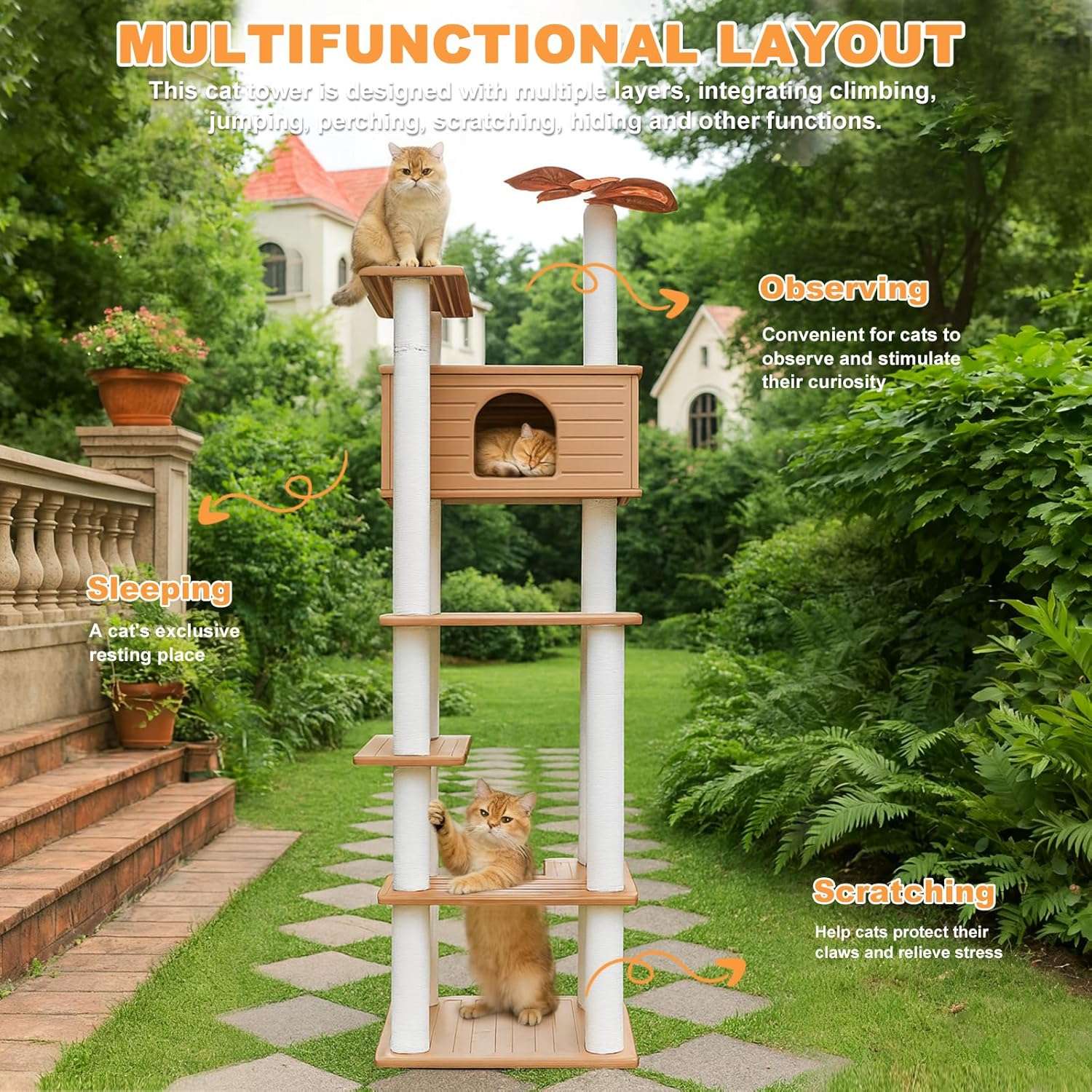 Torre Rascador (190 cm): A prueba de Agua, Ligera y con Casita de Refugio para Gatos