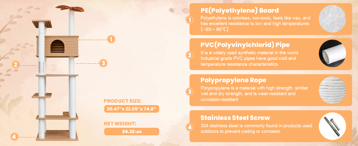 Resistencia Total: Fabricada con tablero de PE, tubería de PVC y cuerda de polipropileno, la torre es totalmente impermeable y duradera.