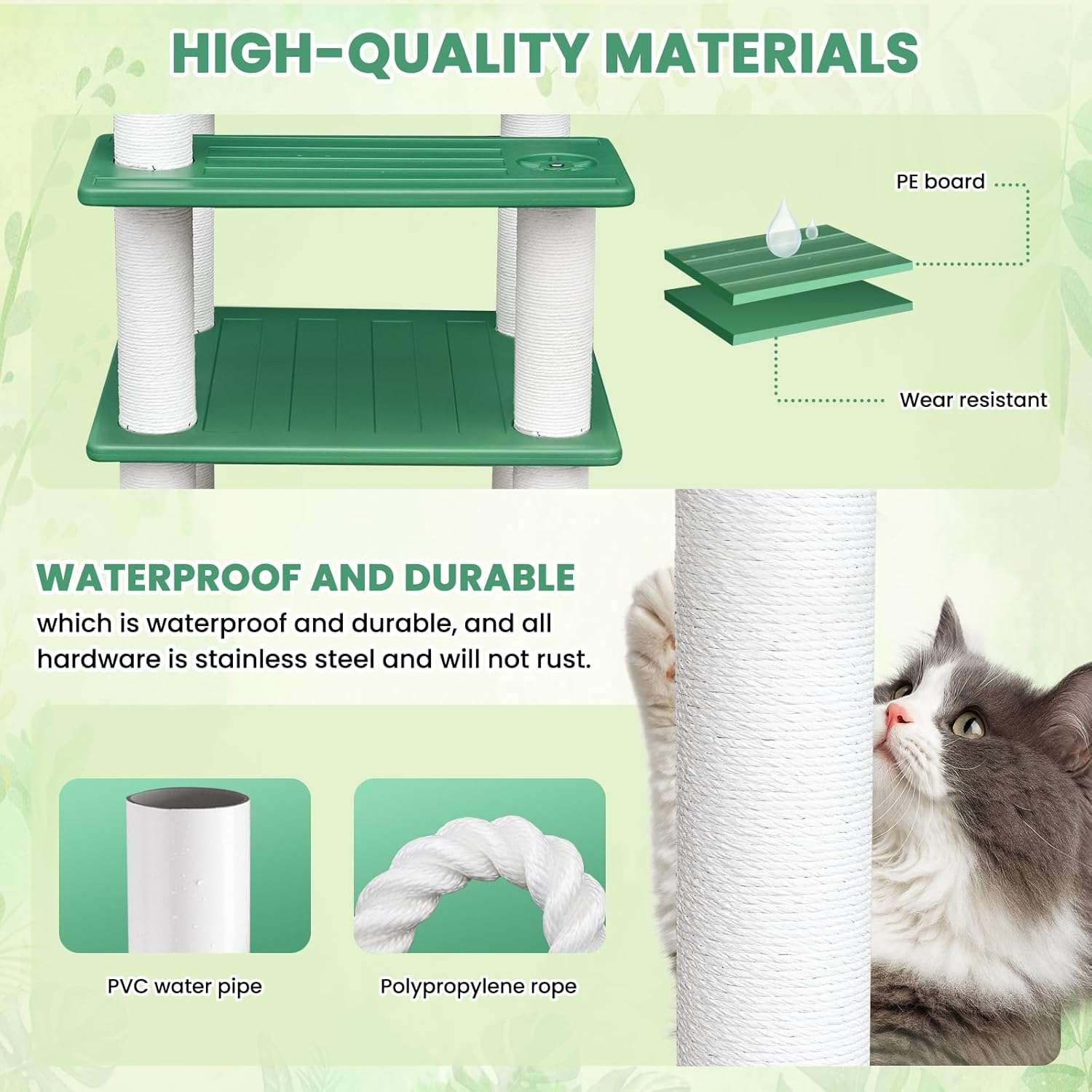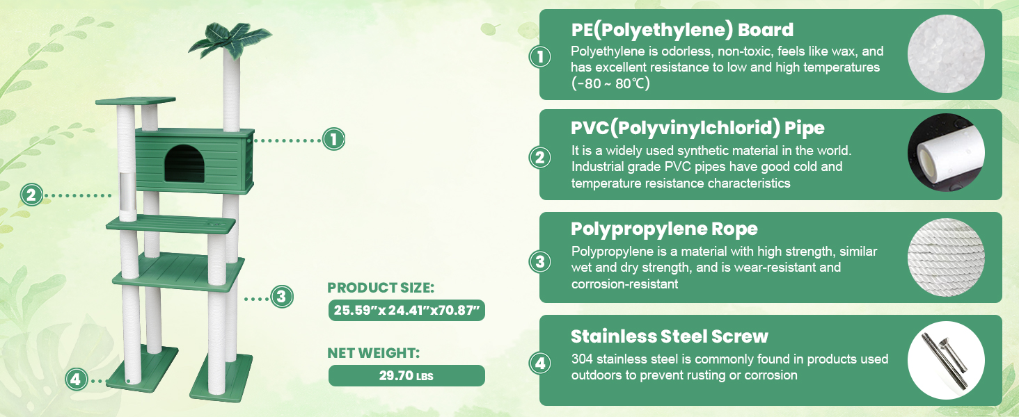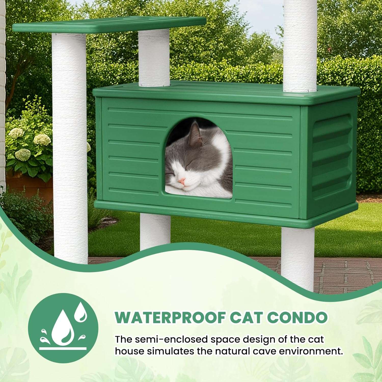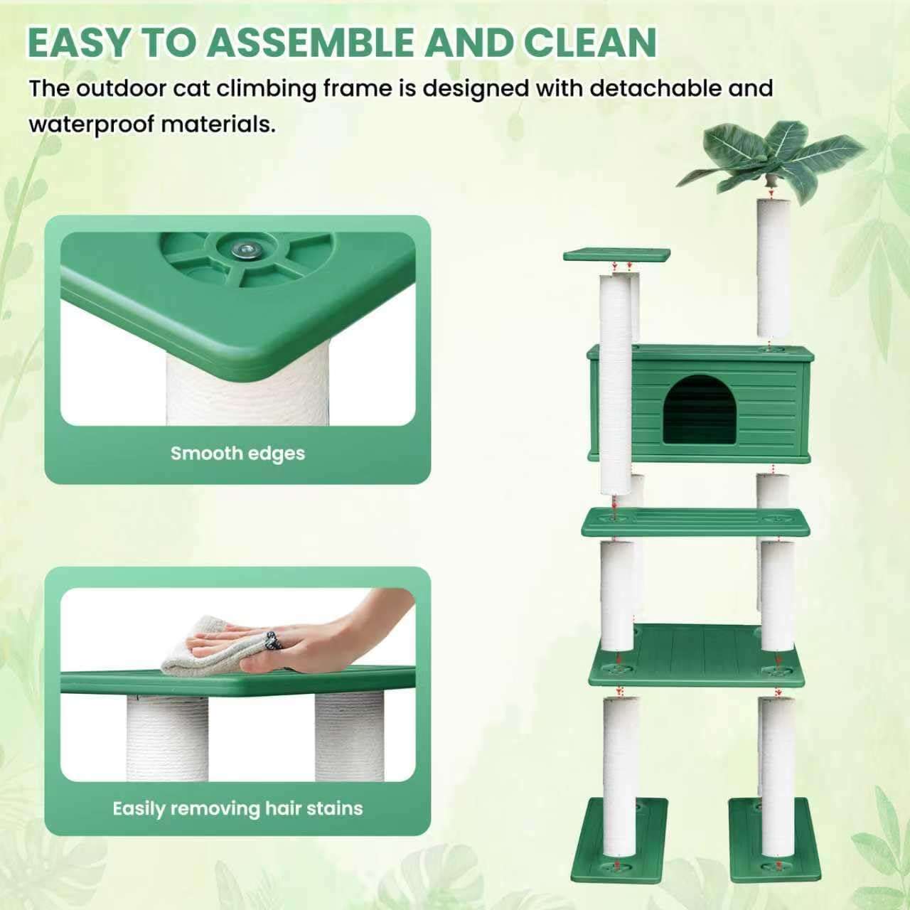 Estilo Botánico: La parte superior está decorada con hojas verdes simuladas para crear un ambiente cercano a la naturaleza, aumentando la sensación de seguridad y comodidad de su gato.