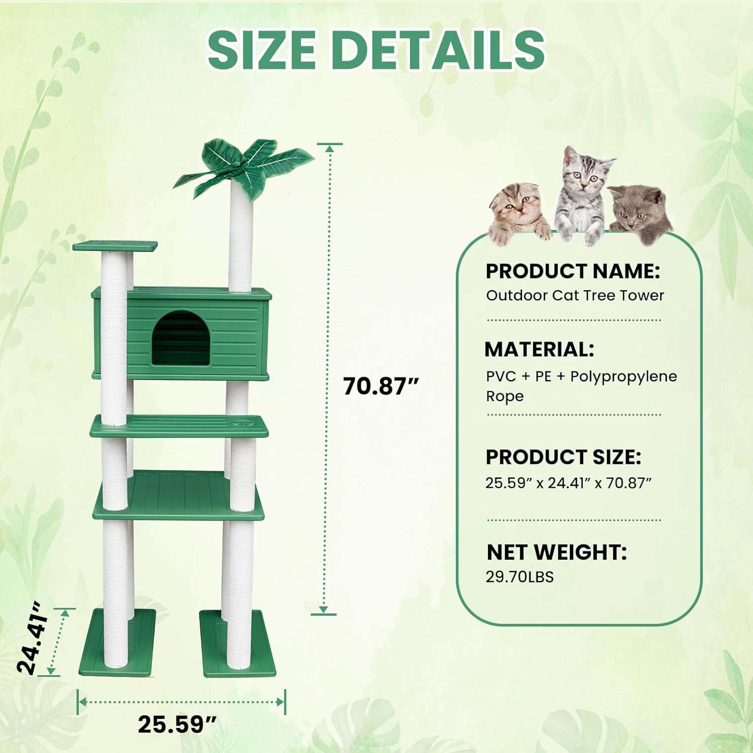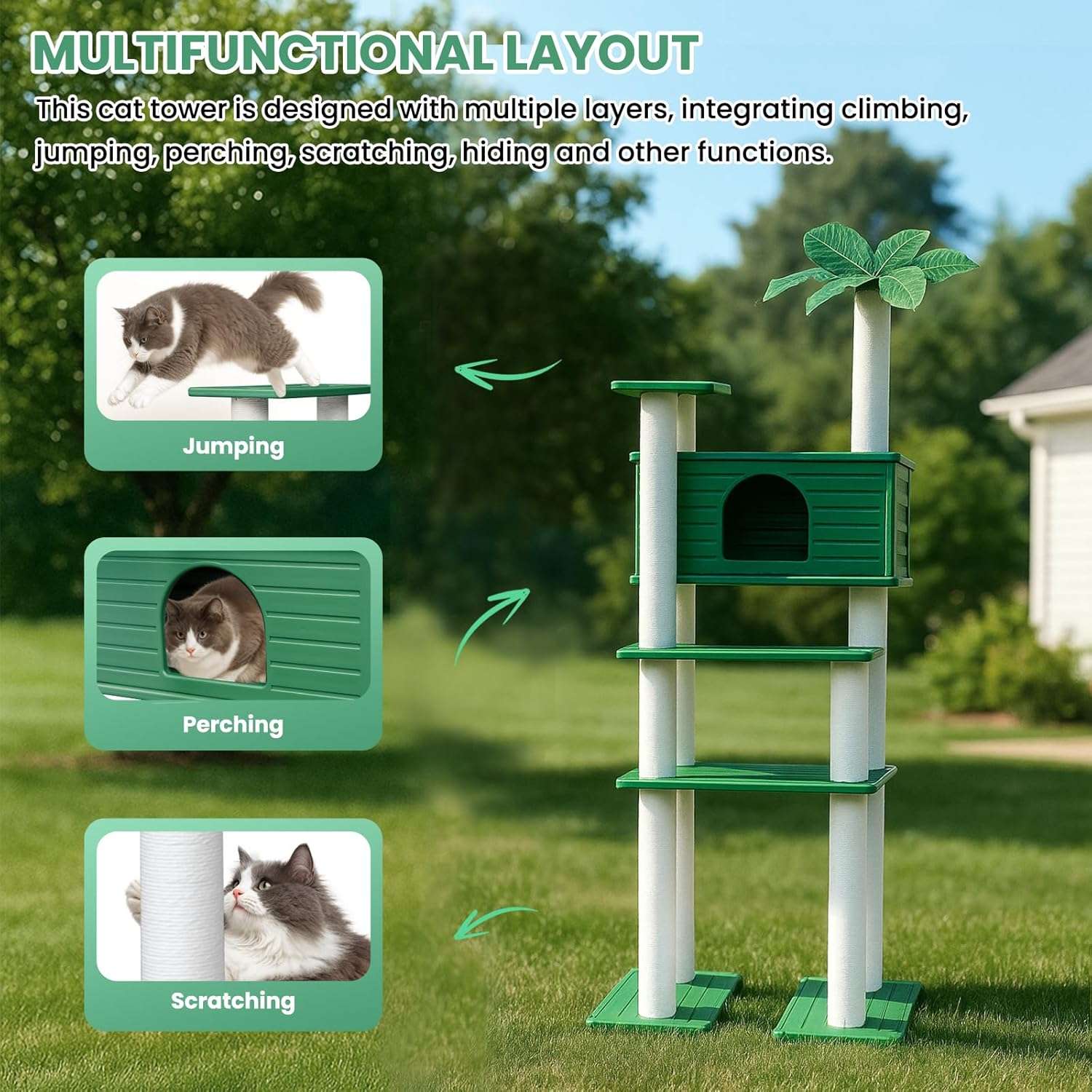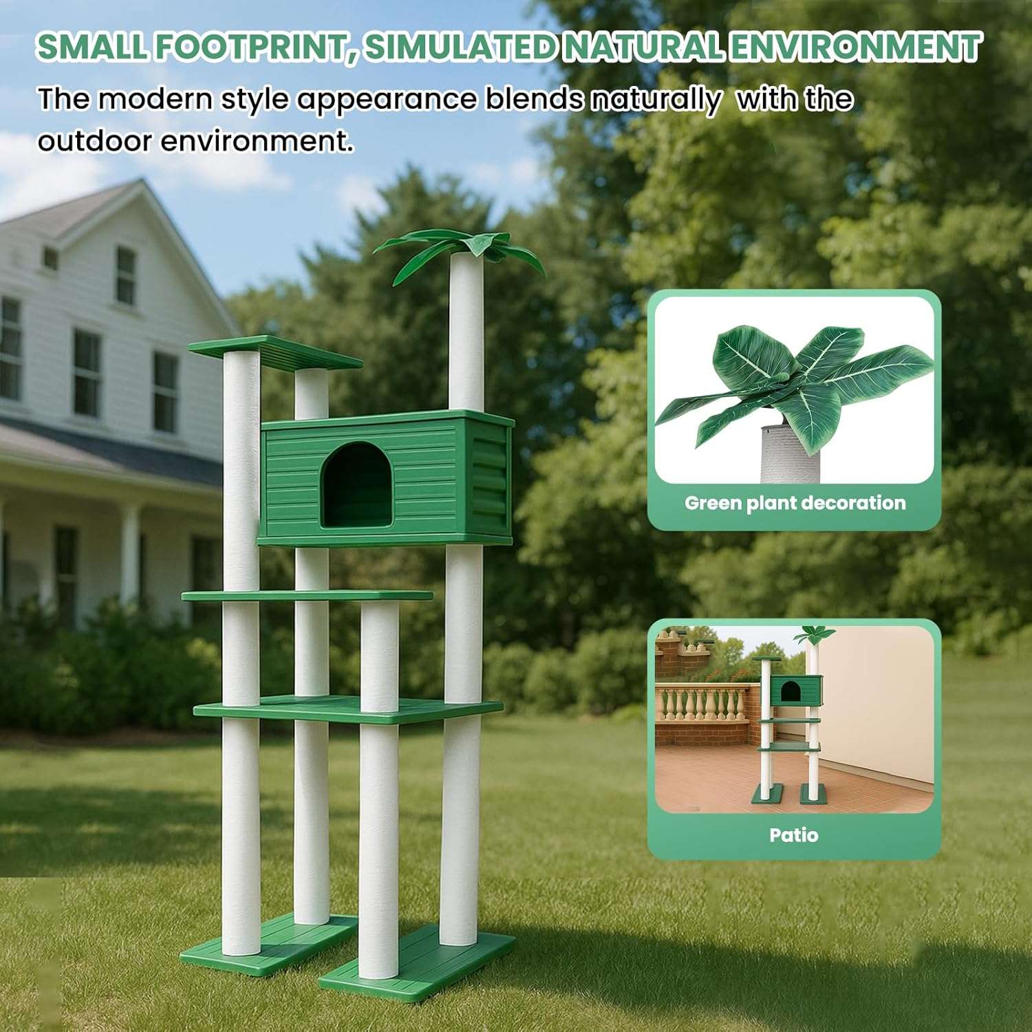Estilo Botánico: La parte superior está decorada con hojas verdes simuladas para crear un ambiente cercano a la naturaleza, aumentando la sensación de seguridad y comodidad de su gato.