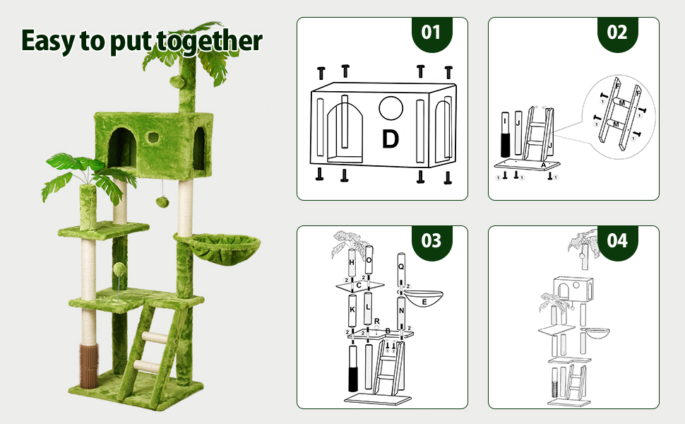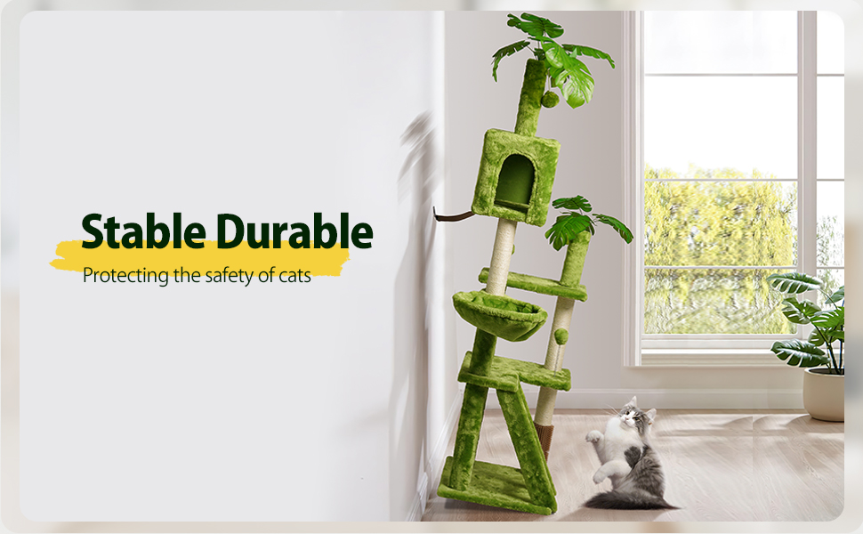 Estructura Robusta: Priorizamos la seguridad de sus gatos. El árbol viene con una estructura resistente y kits antipuntas incluidos.
