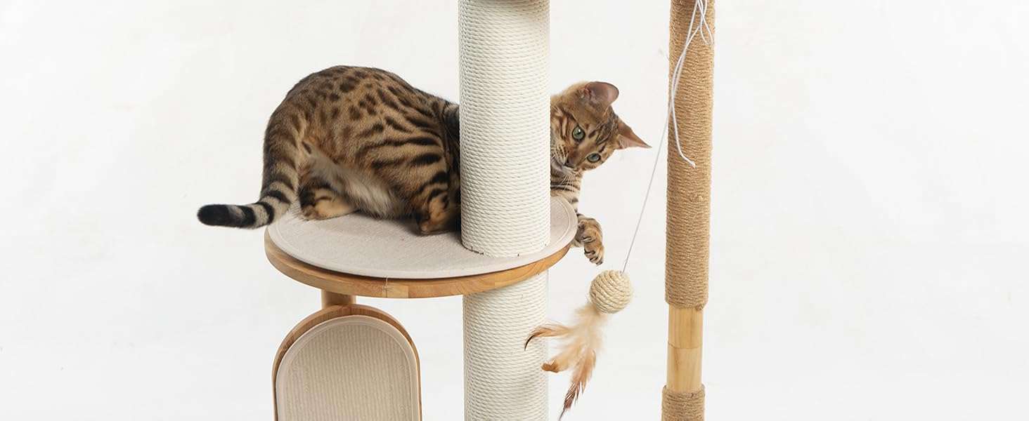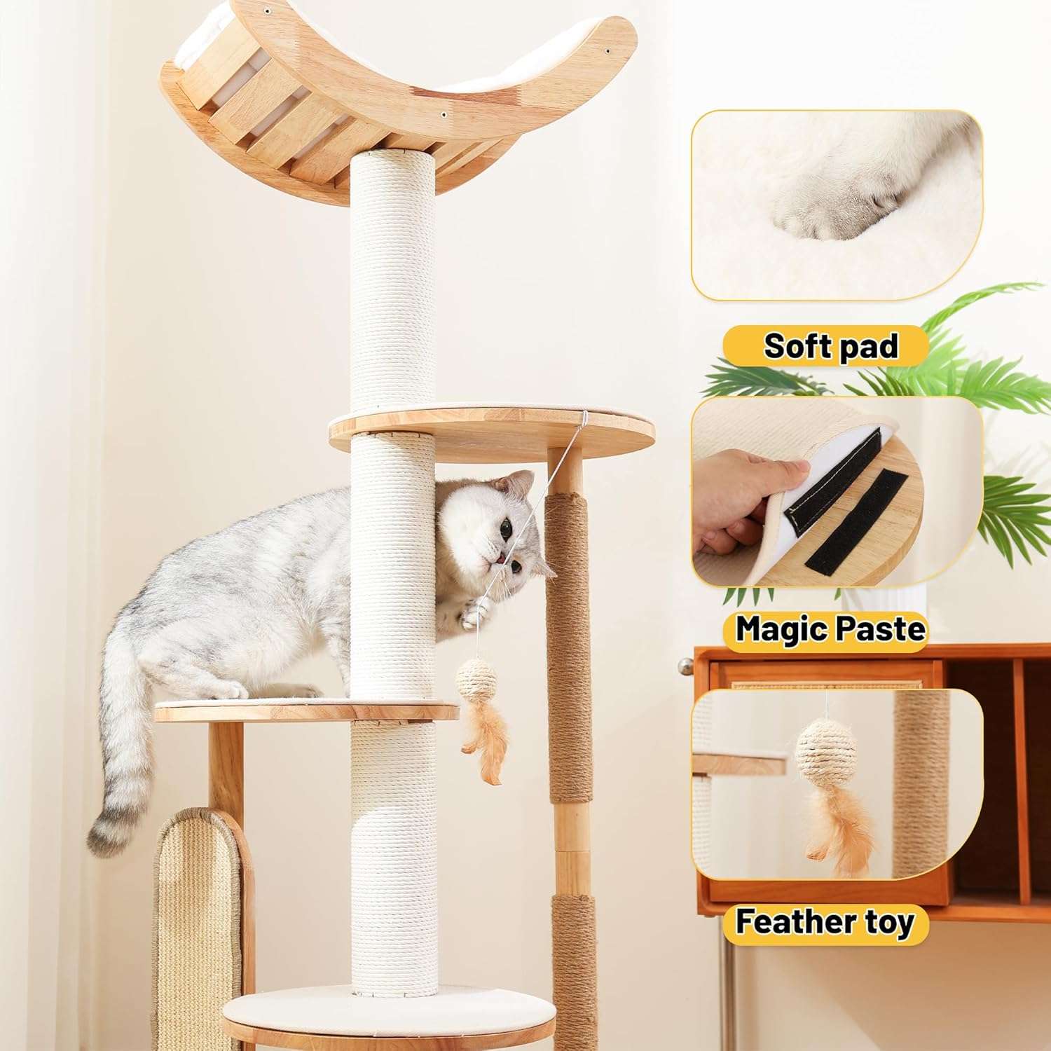 Esta torre para gatos es la solución premium para hogares con michis grandes, combinando una construcción de roble macizo con un diseño multifuncional y elegante.