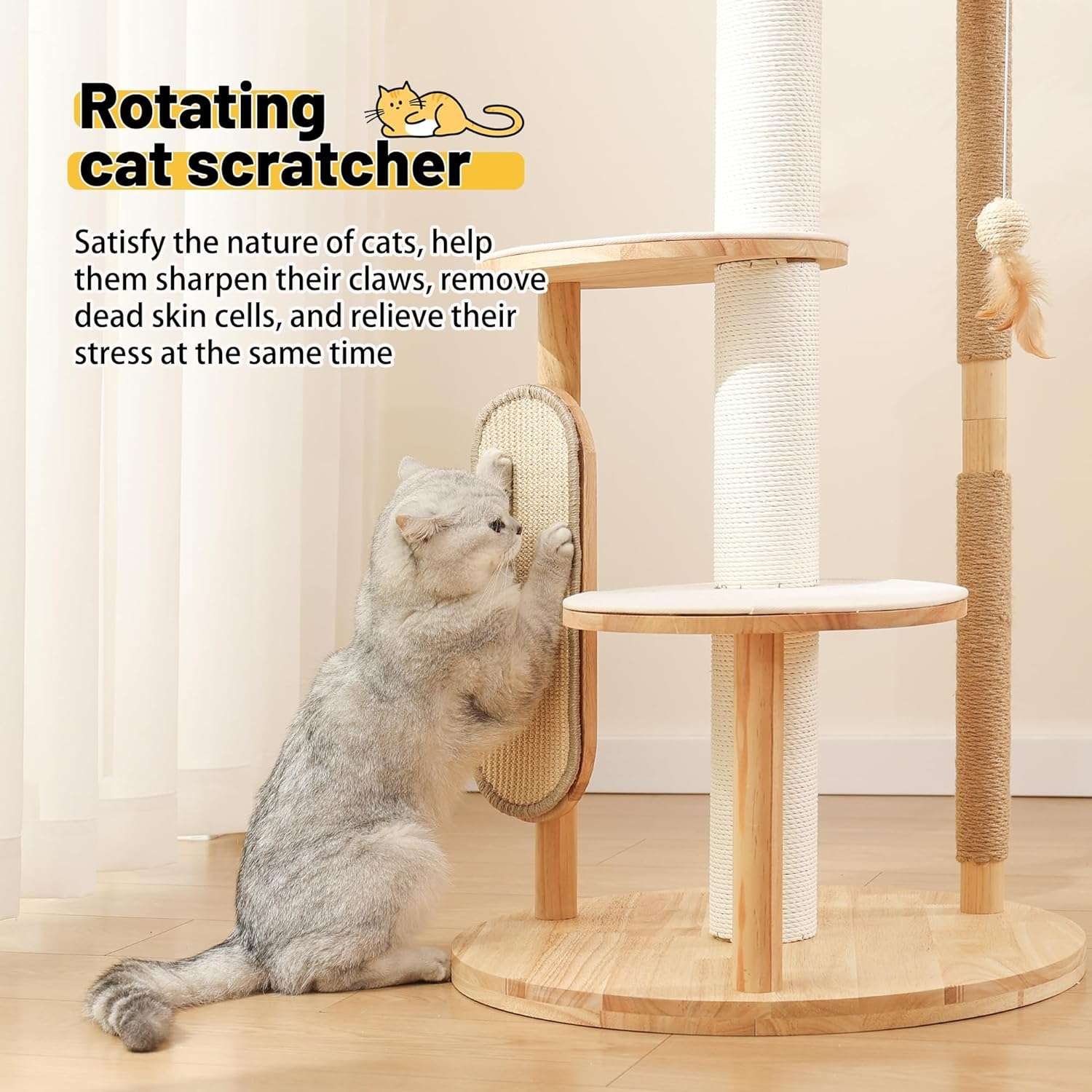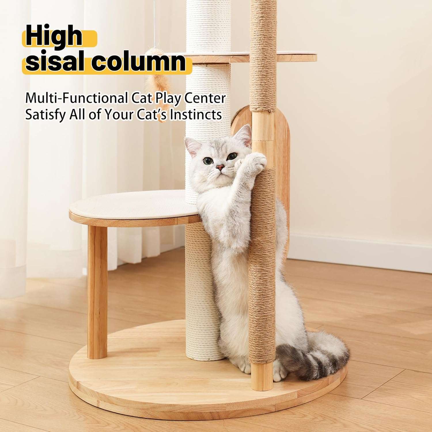 Torre Rascador de Lujo de Roble (140 cm): Firmeza Sólida y Diseño Todo en Uno