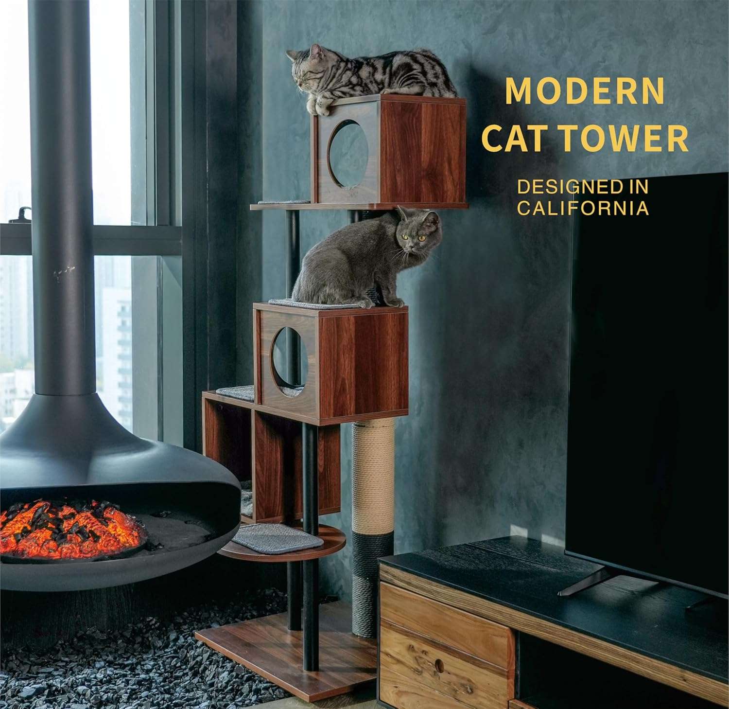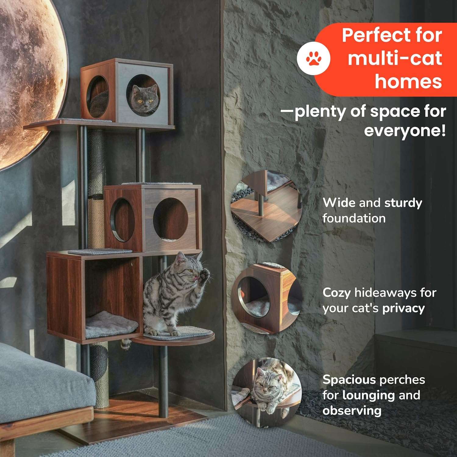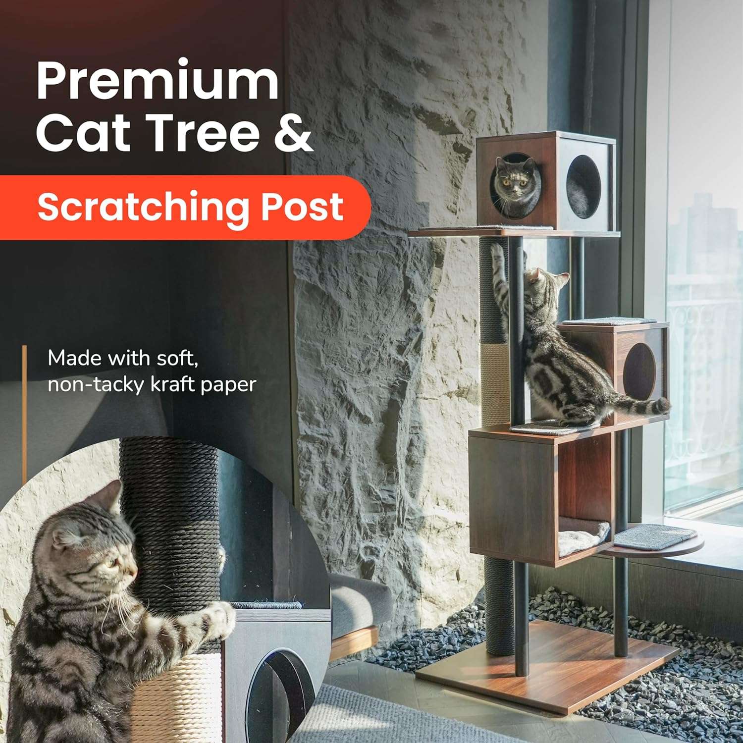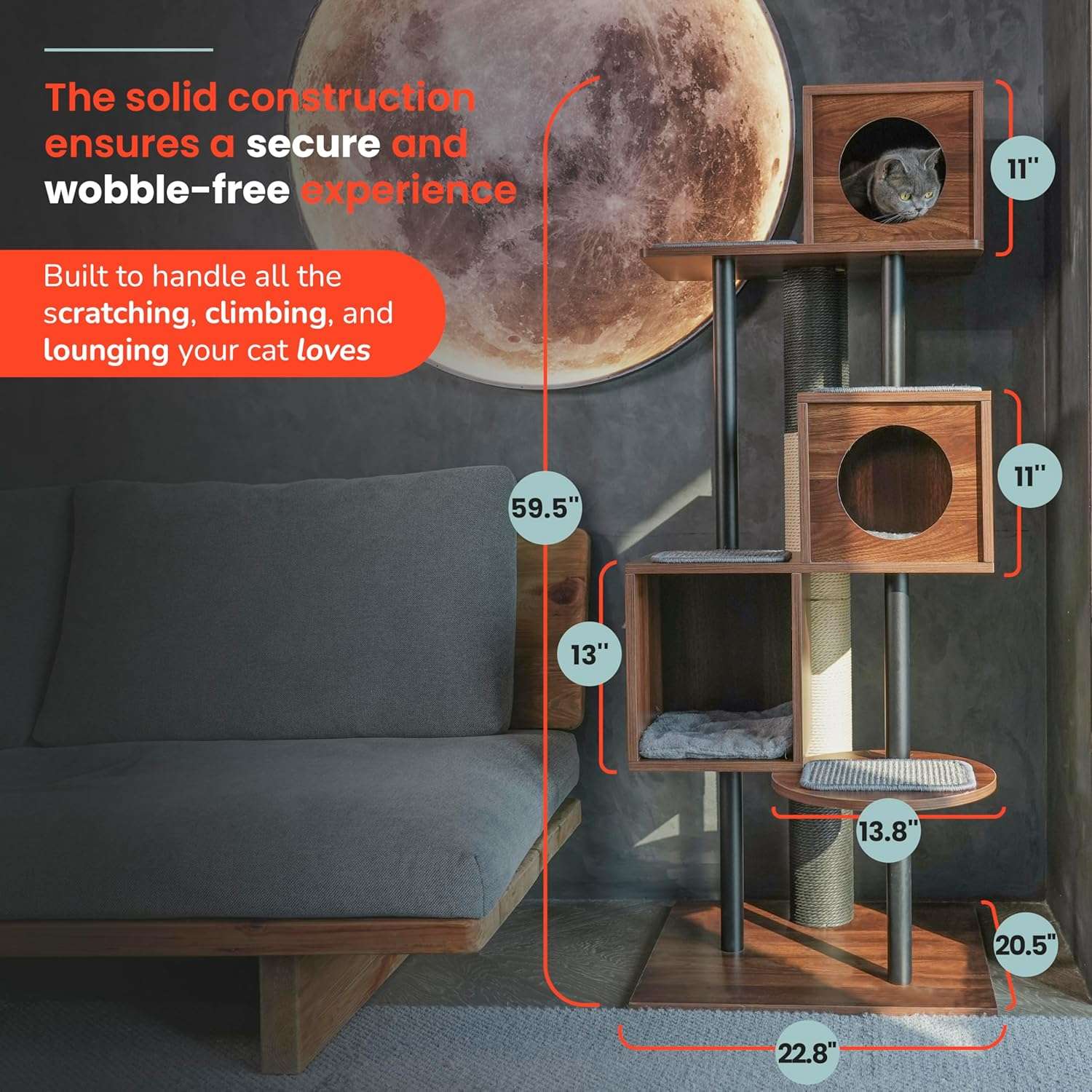 Torre Rascador de Madera (151 cm): Diseño Elegante y Firmeza para Gatos Activos