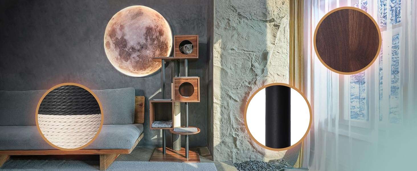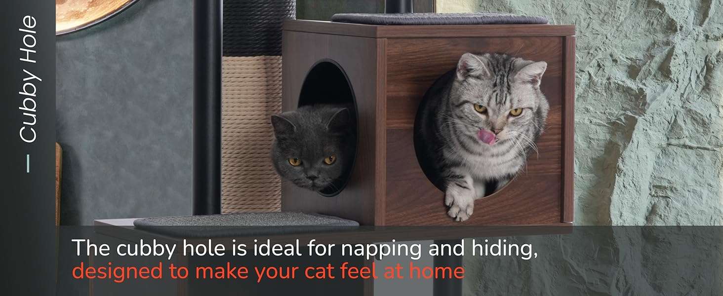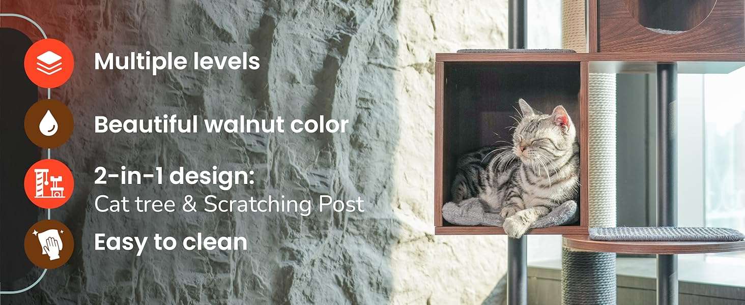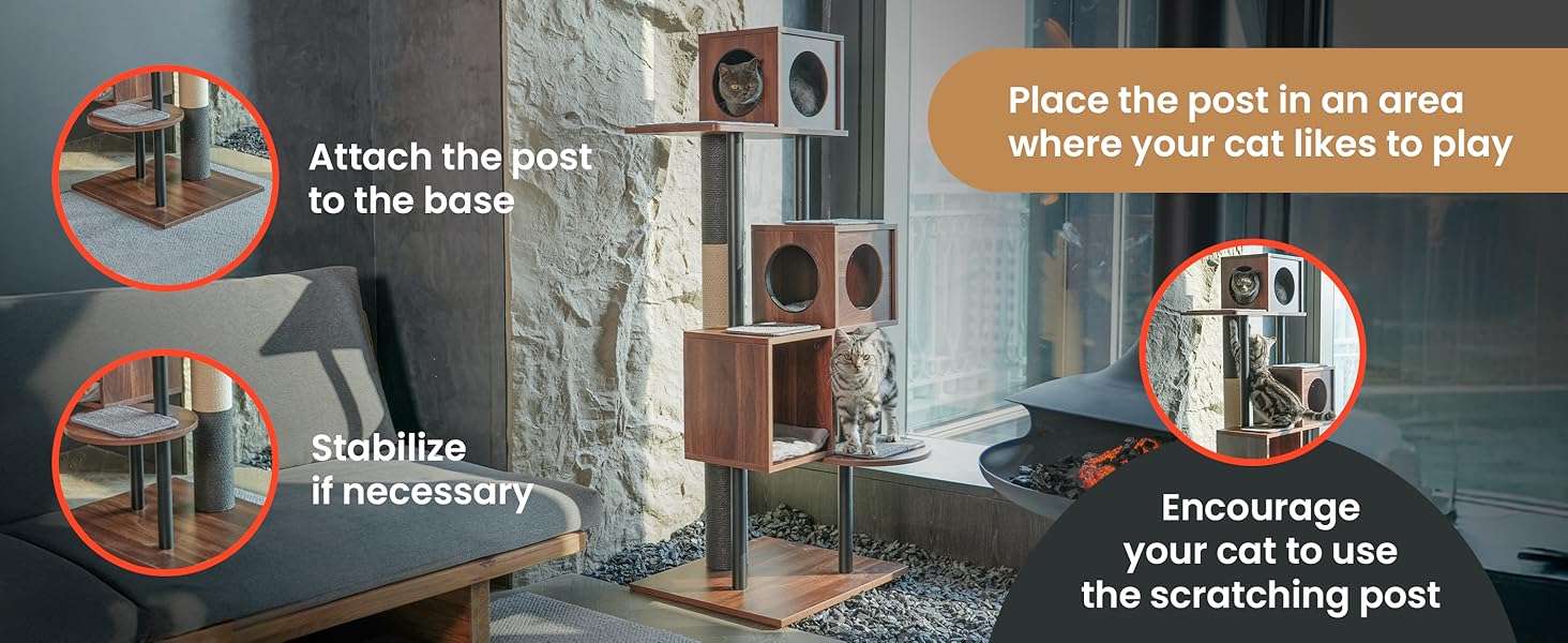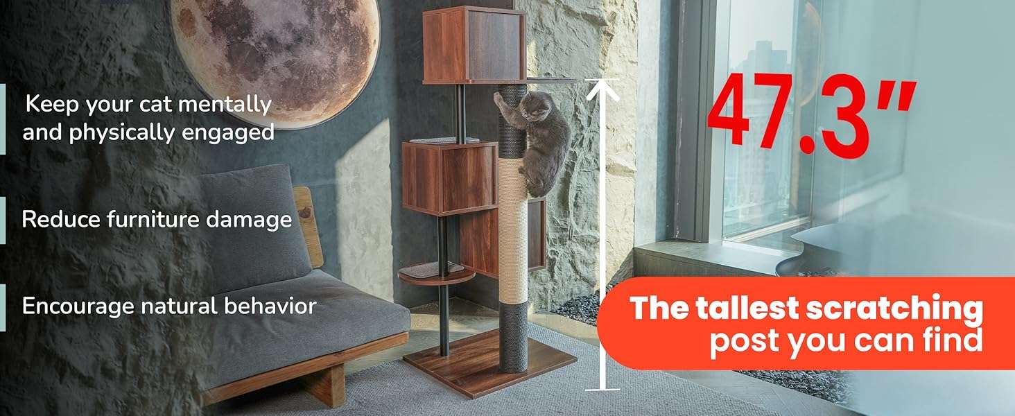 Este árbol rascador mejora simultáneamente el bienestar de su gato y la decoración de su hogar, gracias a su diseño vertical y elegante.