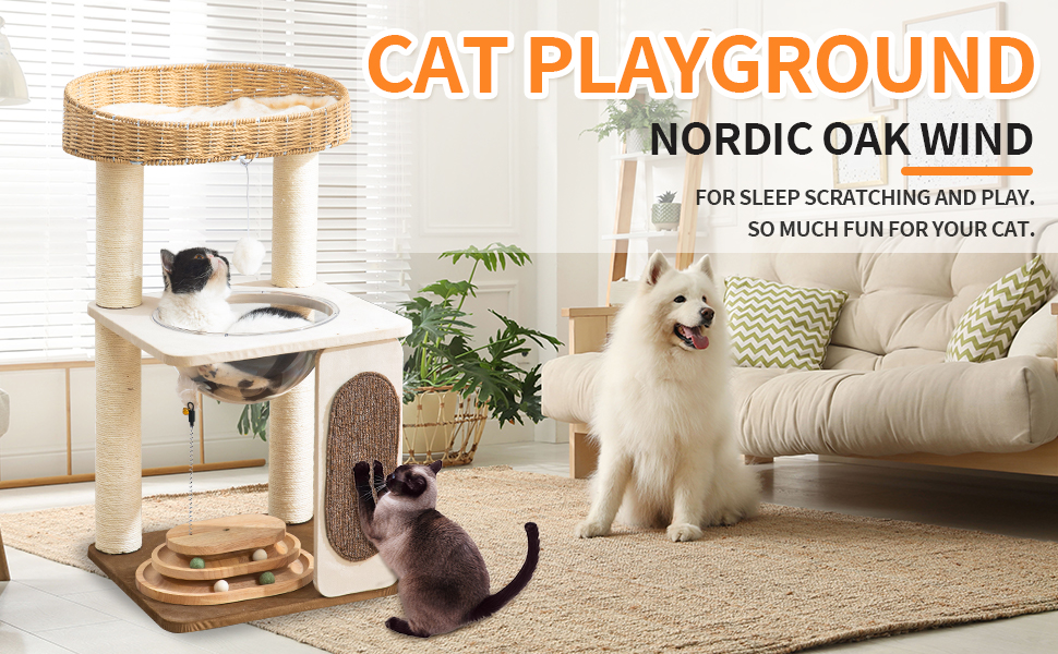 Torre Rascador de Madera (76x44x44 cm) con Capsula Espacial y Nido Tejido para Gatos.