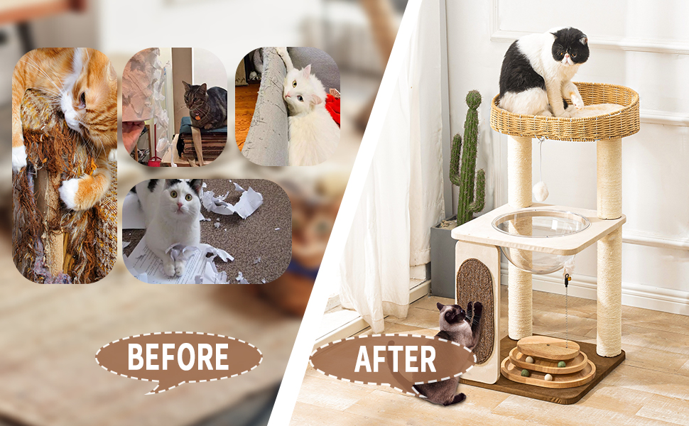 Materiales Naturales y Proteccion de Muebles: Fabricado con tablero de particulas grado E1, papel kraft y cuerda de sisal natural. Los rascadores cubiertos de sisal son seguros y perfectos para que los gatos afilen sus garras, protegiendo sus delicados muebles de arañazos.