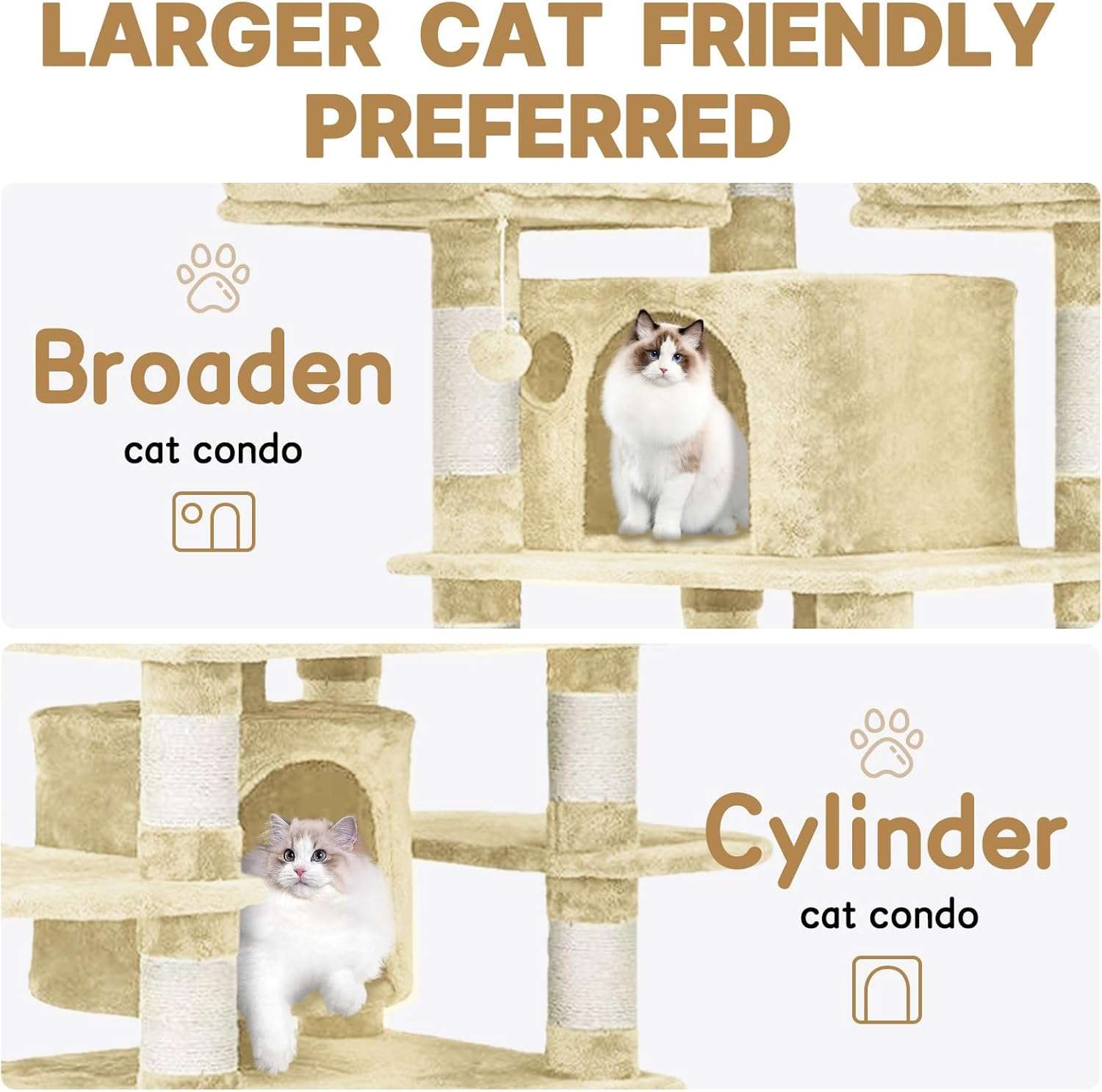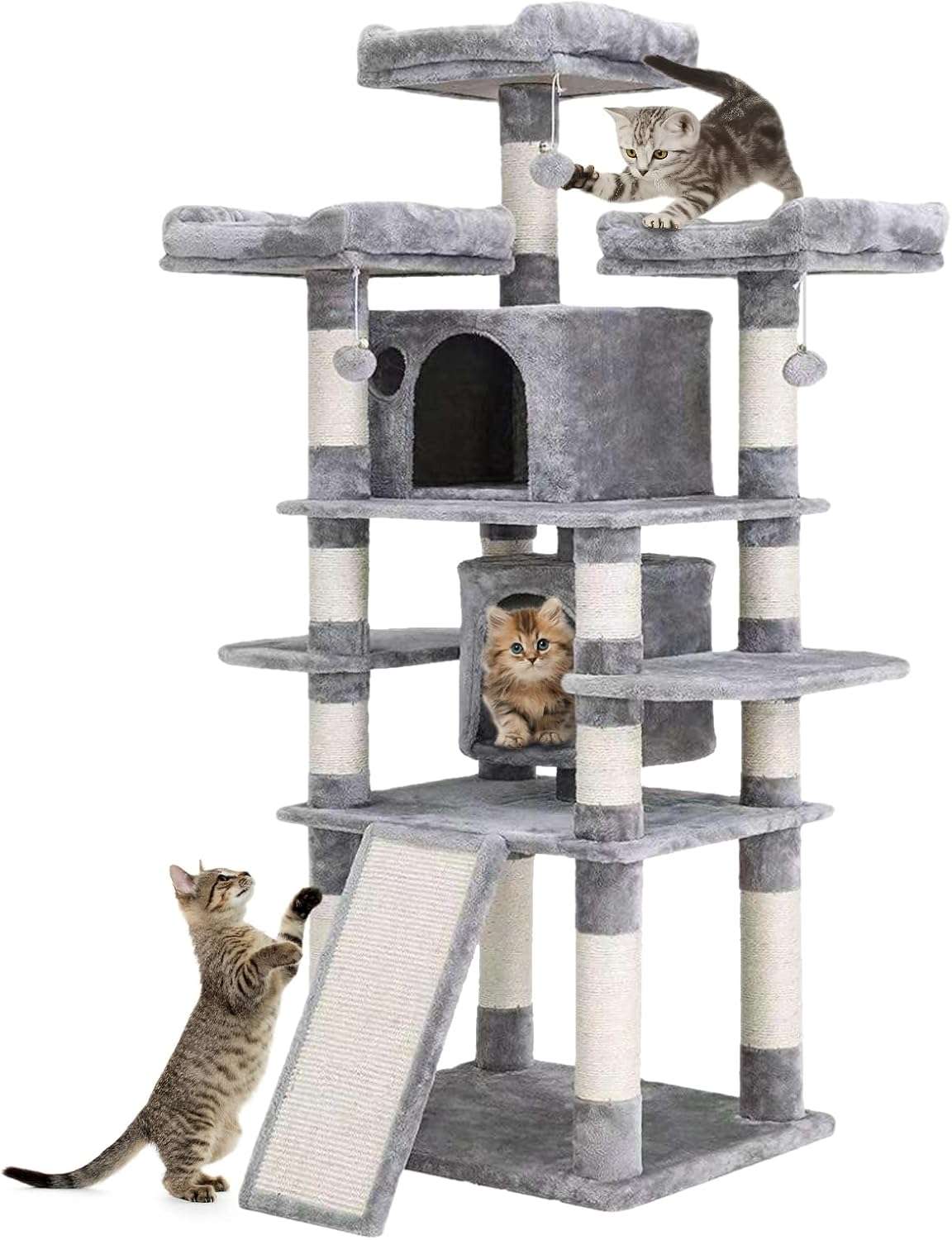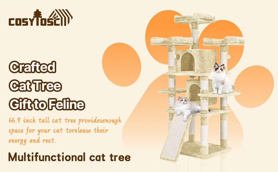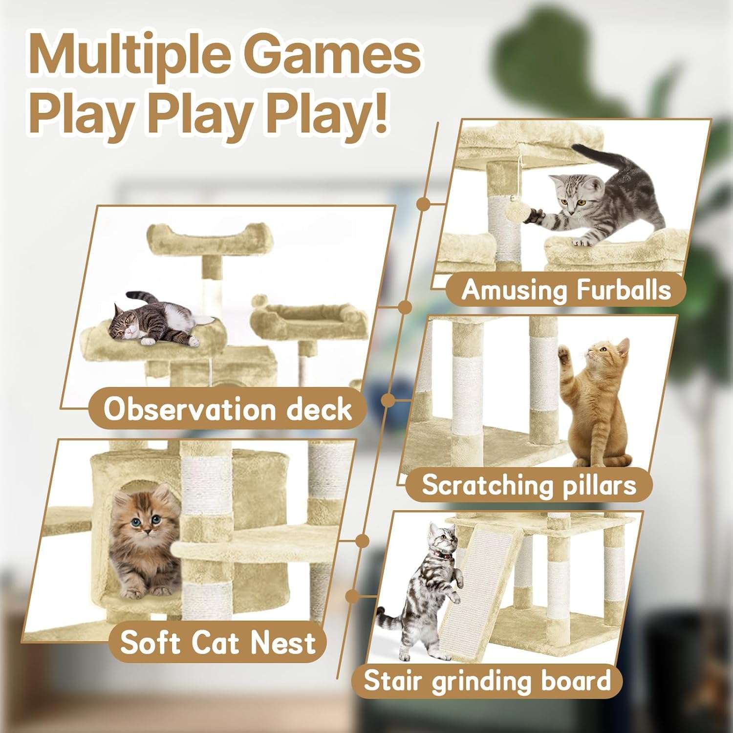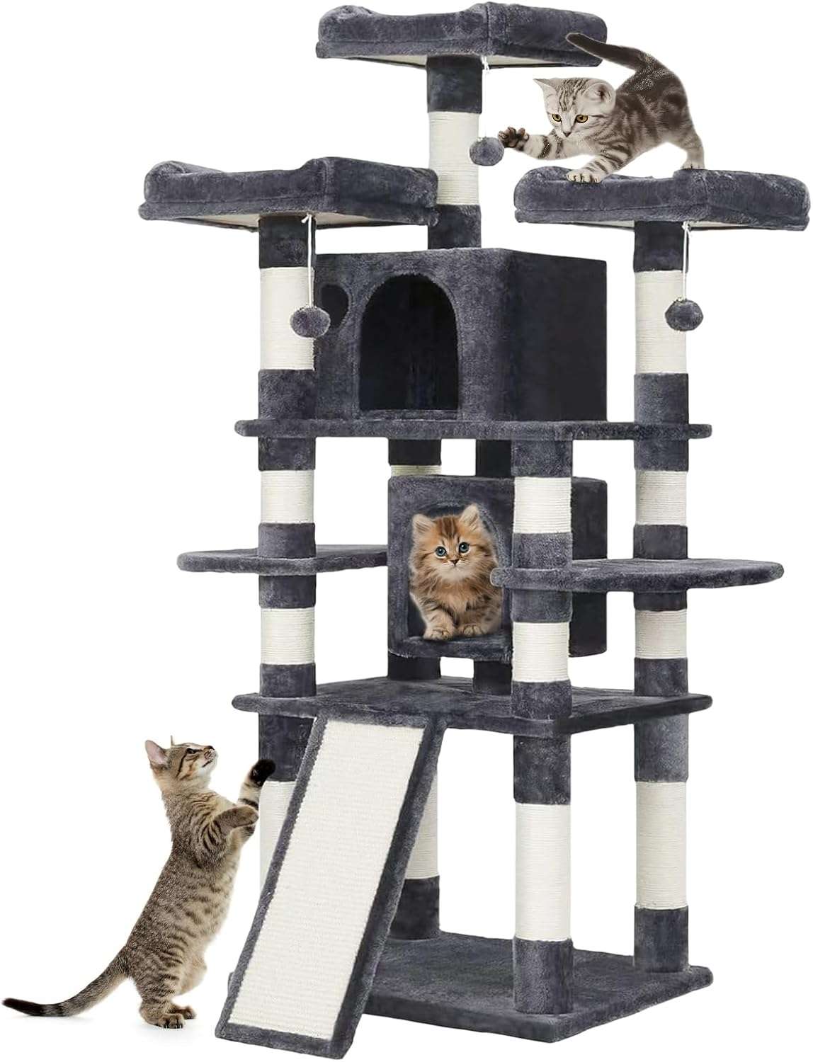 Este arbol para gatos de 170 centimetros combina una estructura firme con un diseño elegante que se mezcla con la decoracion de su hogar. Ofrece el equilibrio perfecto entre un parque de diversiones y un lugar de descanso seguro.