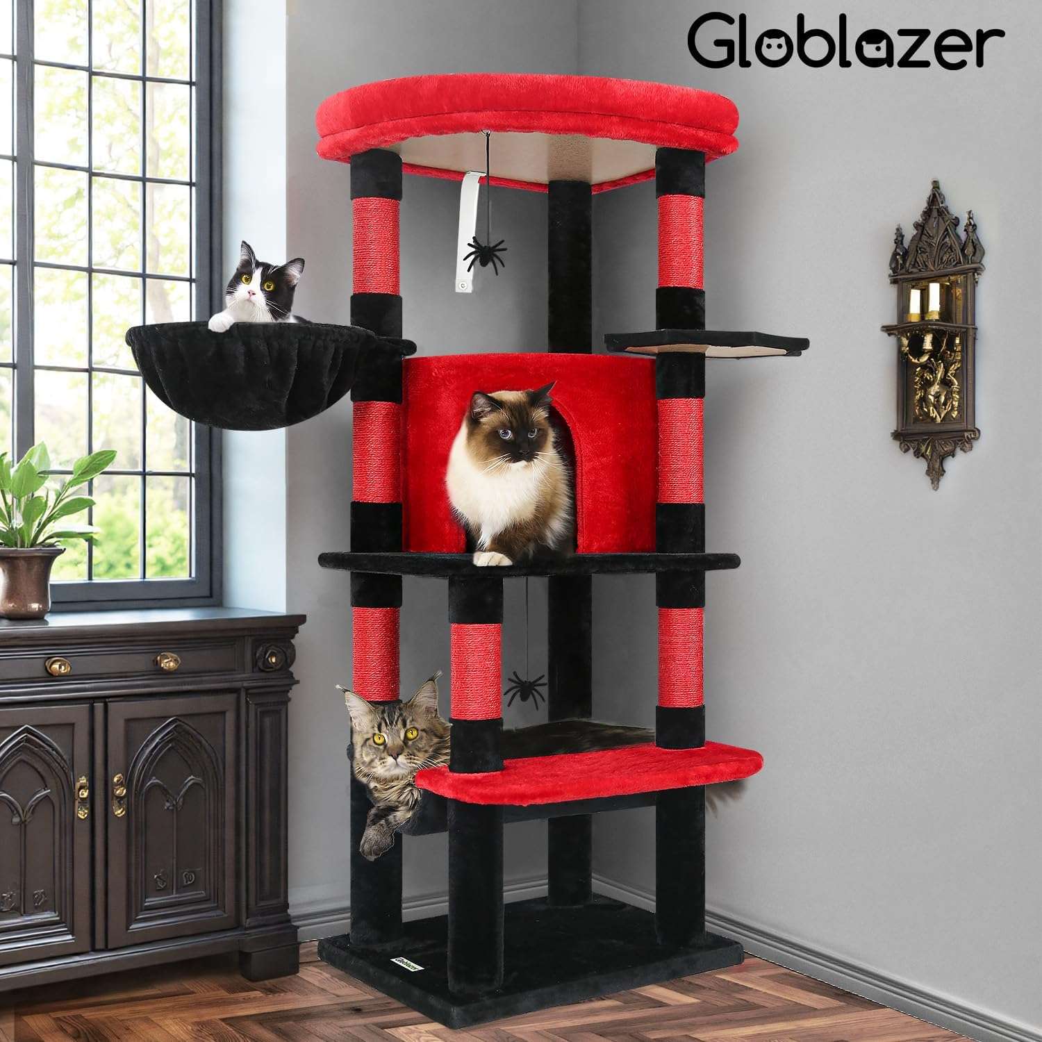 Hamaca de Felpa y Cesta Colgante: Diseñado pensando en la comodidad, incluye una hamaca de felpa y una acogedora canasta colgante que se balancea ligeramente. Estos elementos imitan la forma natural de descanso de los gatos, ofreciendo diversas opciones para la siesta con materiales de alta calidad.