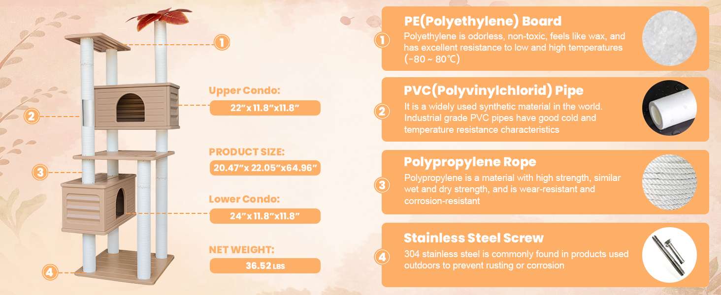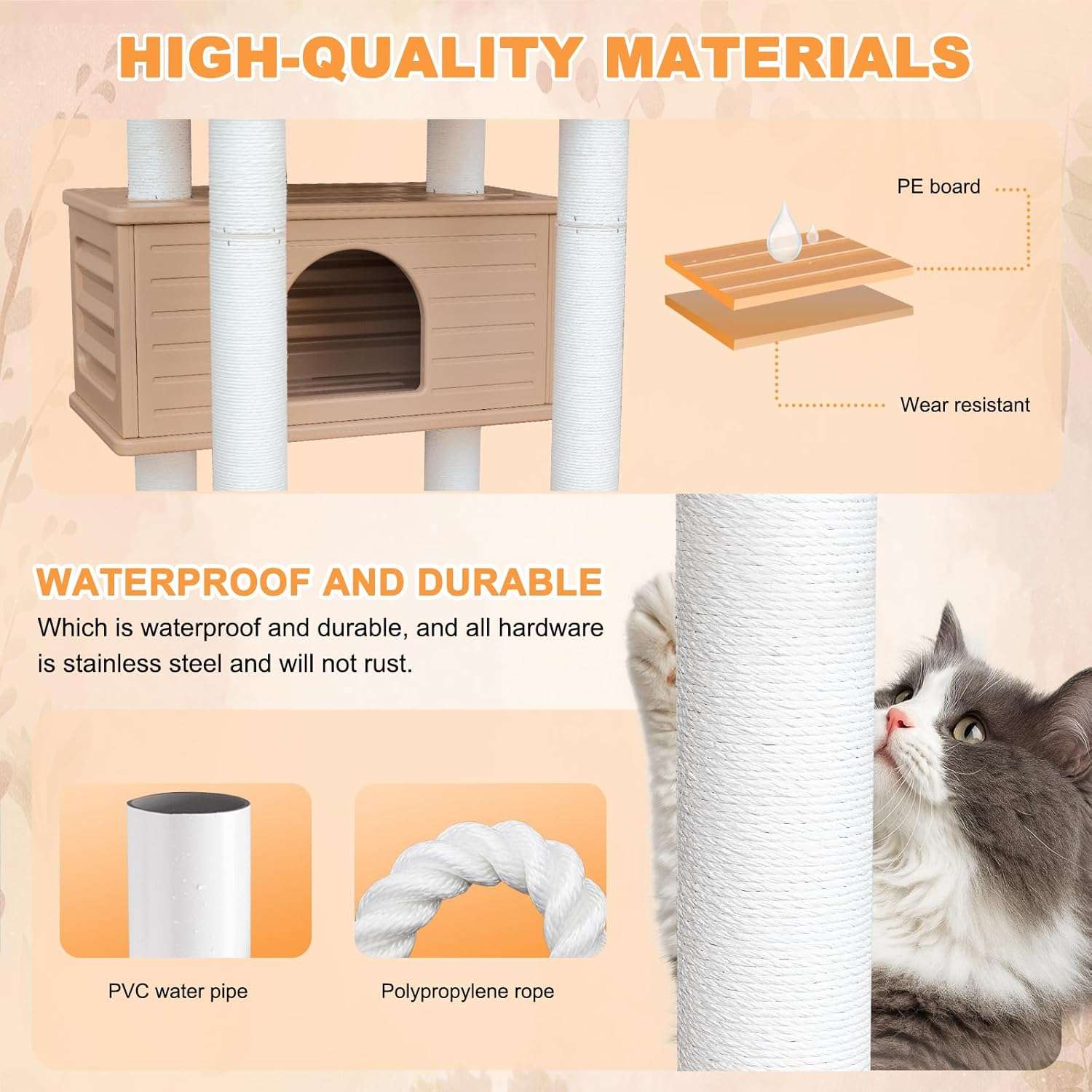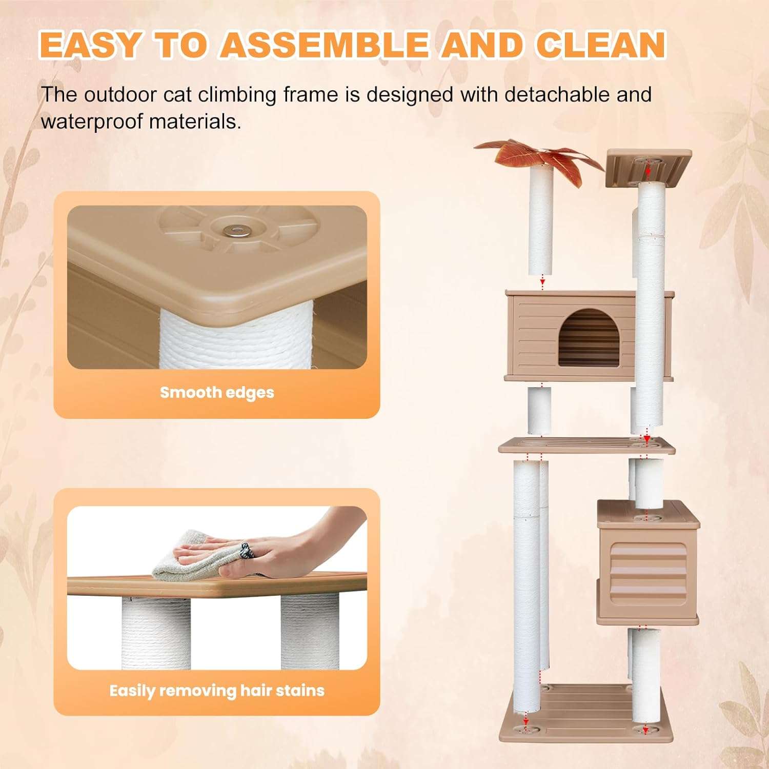 Torre Rascador Exterior (165 cm): Impermeable, Inoxidable y Súper Segura para Varios Gatos