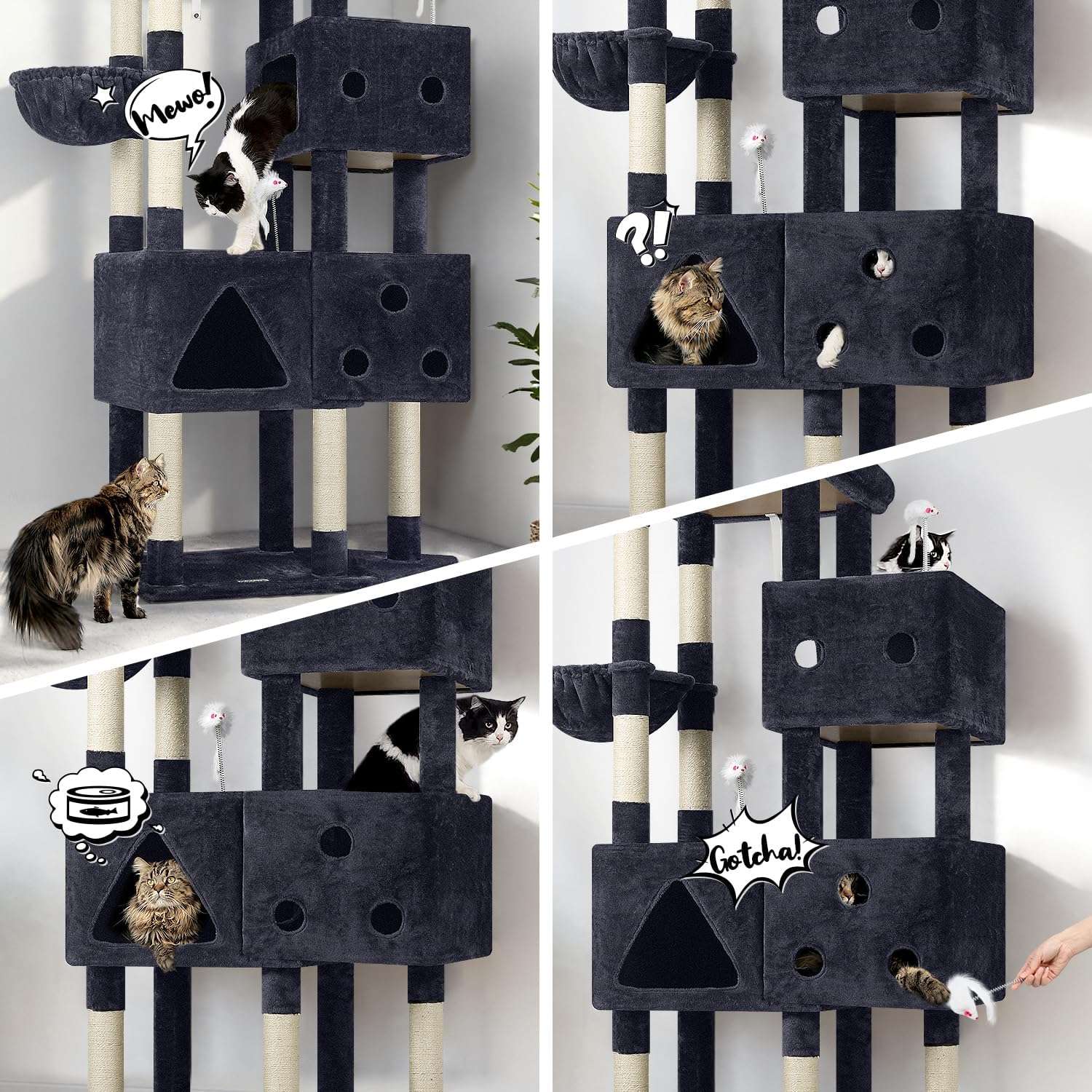 Ideal para Hogares con Varios Gatos: El modelo F81 esta diseñado para acomodar de 5 a 6 gatos a la vez. Al tener tantos niveles y refugios, cada gato tiene su propio espacio, reduciendo las peleas por el mejor lugar y asegurando la armonia en el hogar.