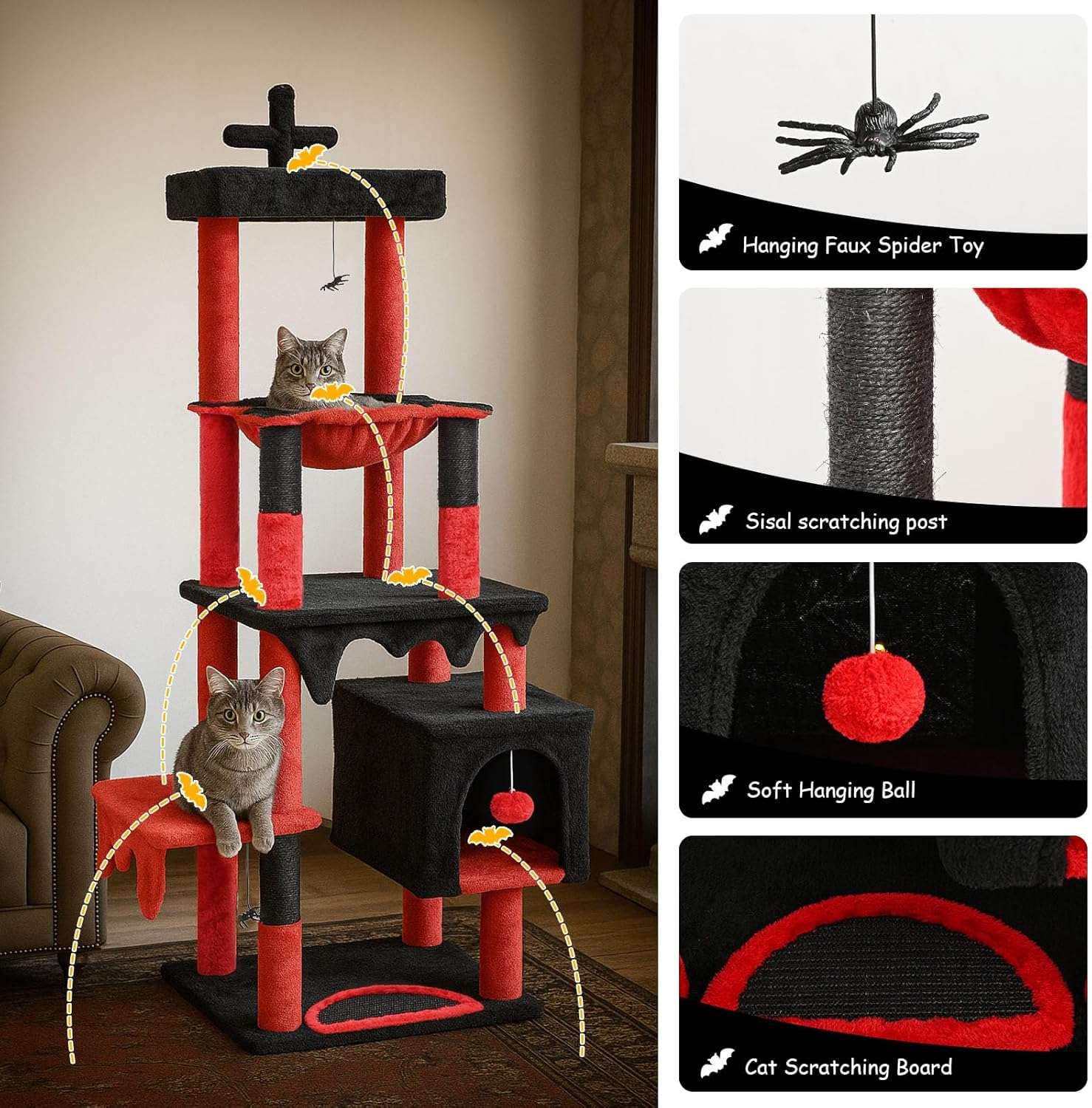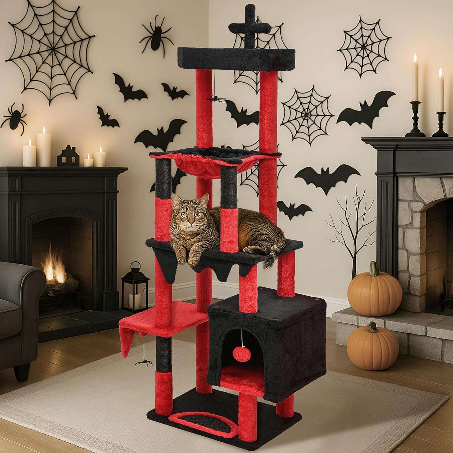 Torre Rascador Gótica (166 cm): Diseño Místico, Firmeza y Refugio para Gatos Múltiples