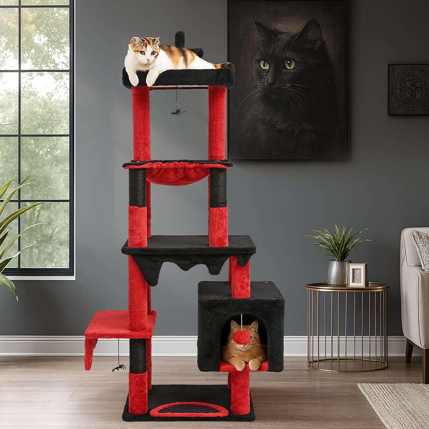 Este árbol para gatos de varios niveles es un territorio completo para su felino, diseñado con un estilo único que añade elegancia y misterio a su hogar.