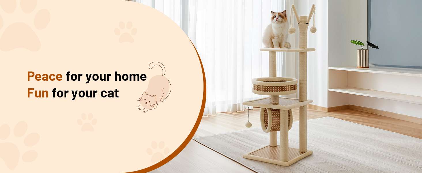 Esta torre de escalada fue construida con estandares de alta resistencia, ofreciendo un mueble elegante y funcional para el descanso de su gato durante todo el año.