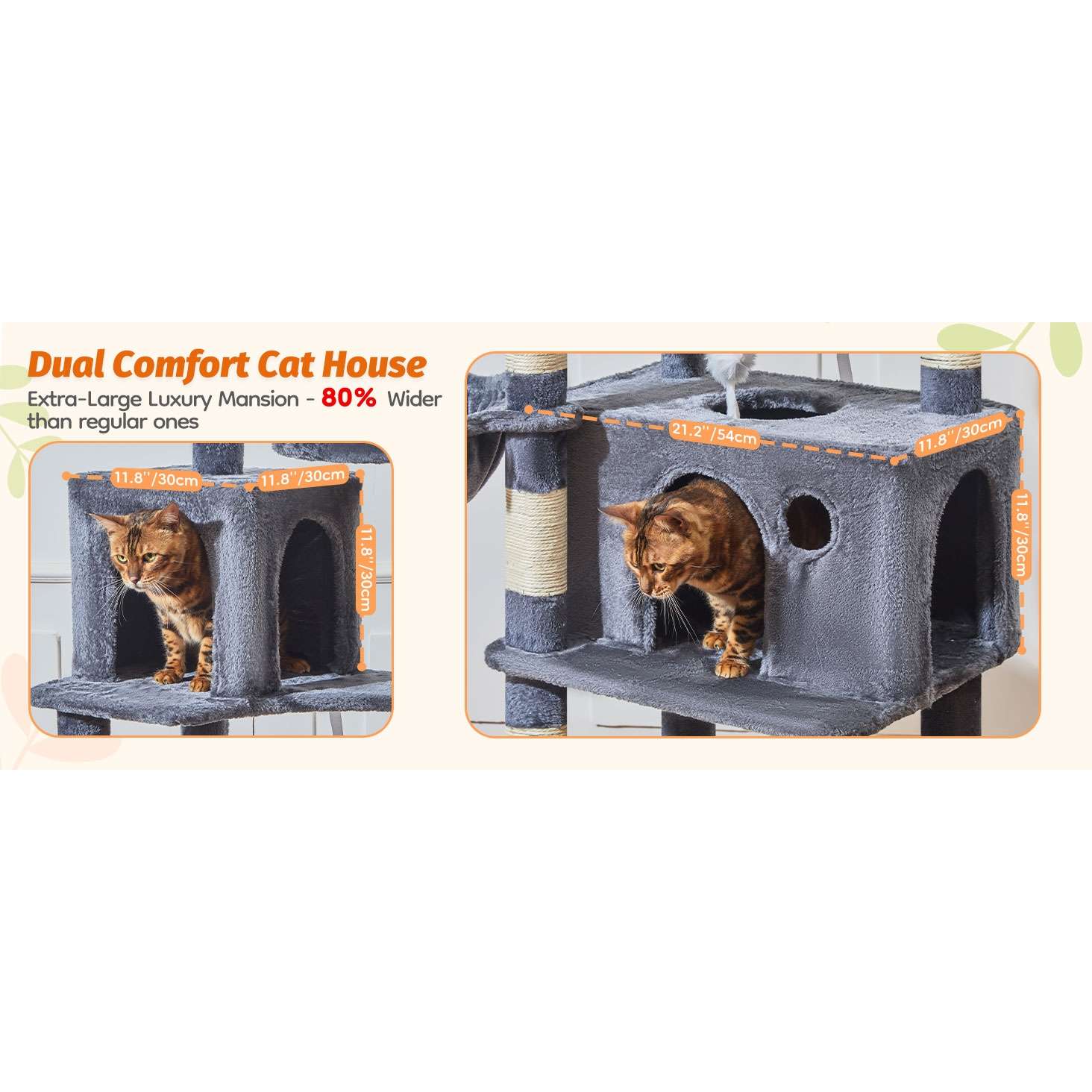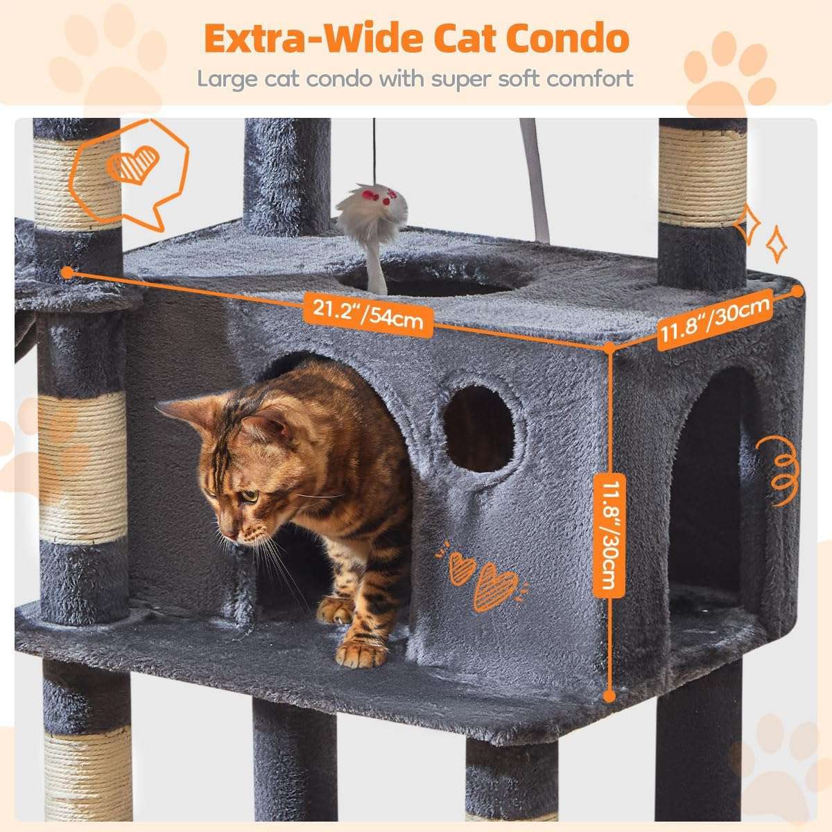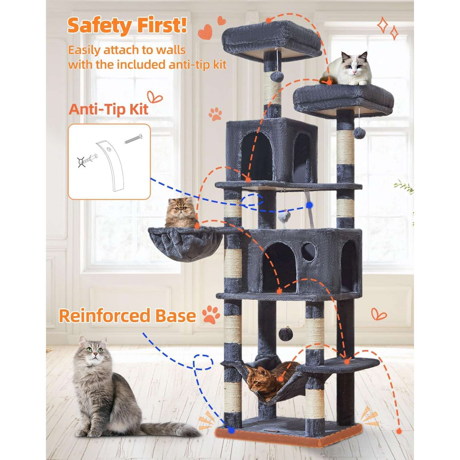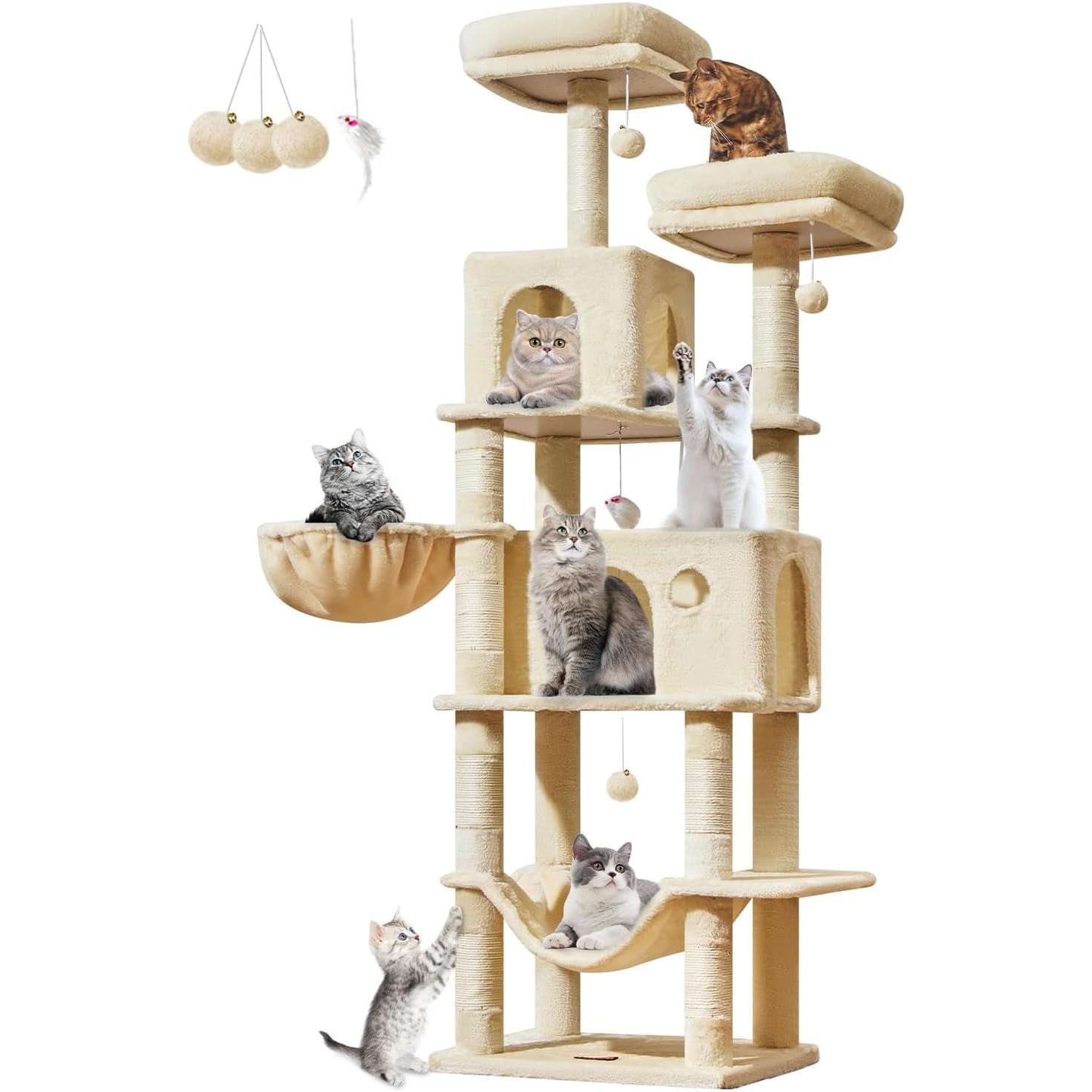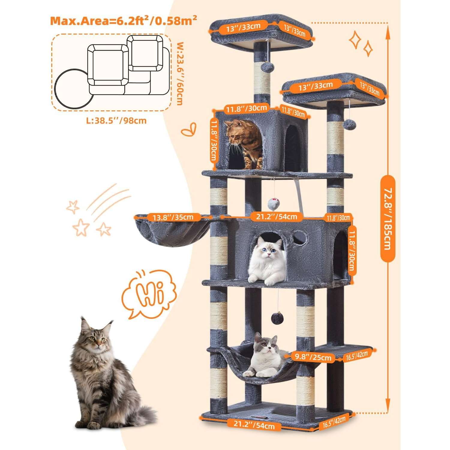 Altura y Estructura: La torre mide 185 centímetros de alto y cuenta con un diseño de múltiples niveles para escalar fácilmente.