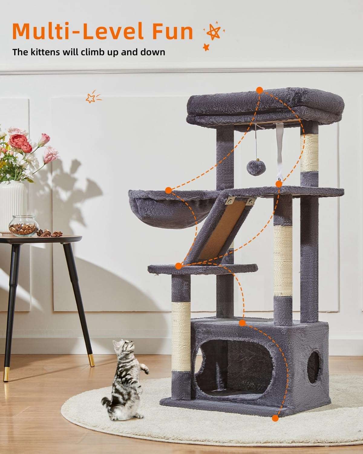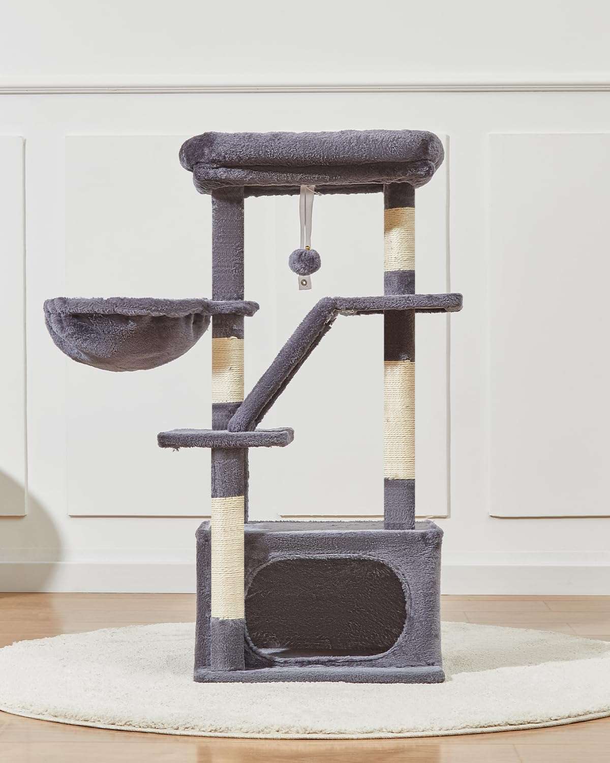 Este arbol compacto de 98 centimetros es el gimnasio de iniciacion perfecto. Diseñado especificamente para la seguridad y diversion de los gatitos, ofrece un espacio acogedor sin ocupar mucho lugar en su hogar.