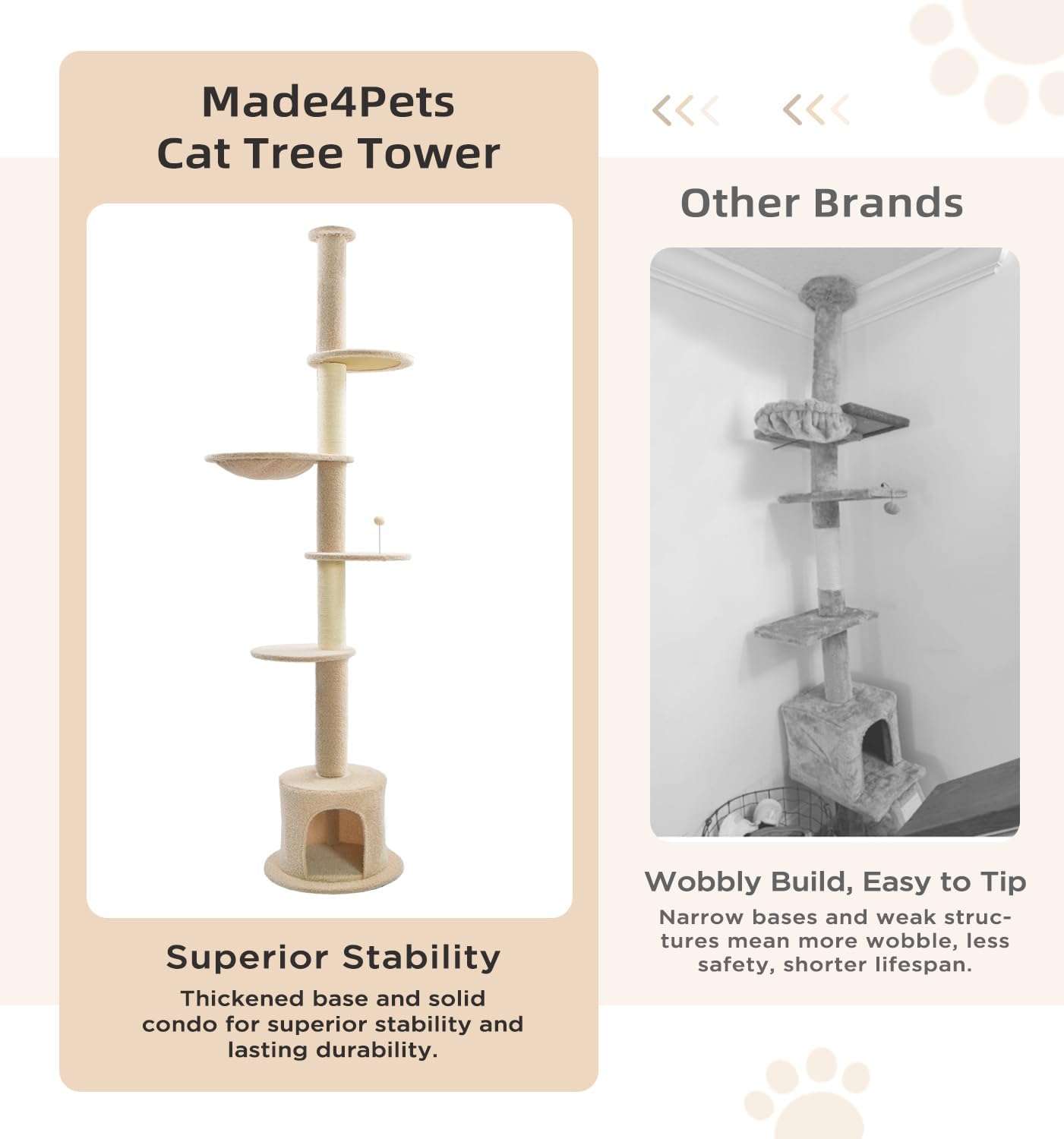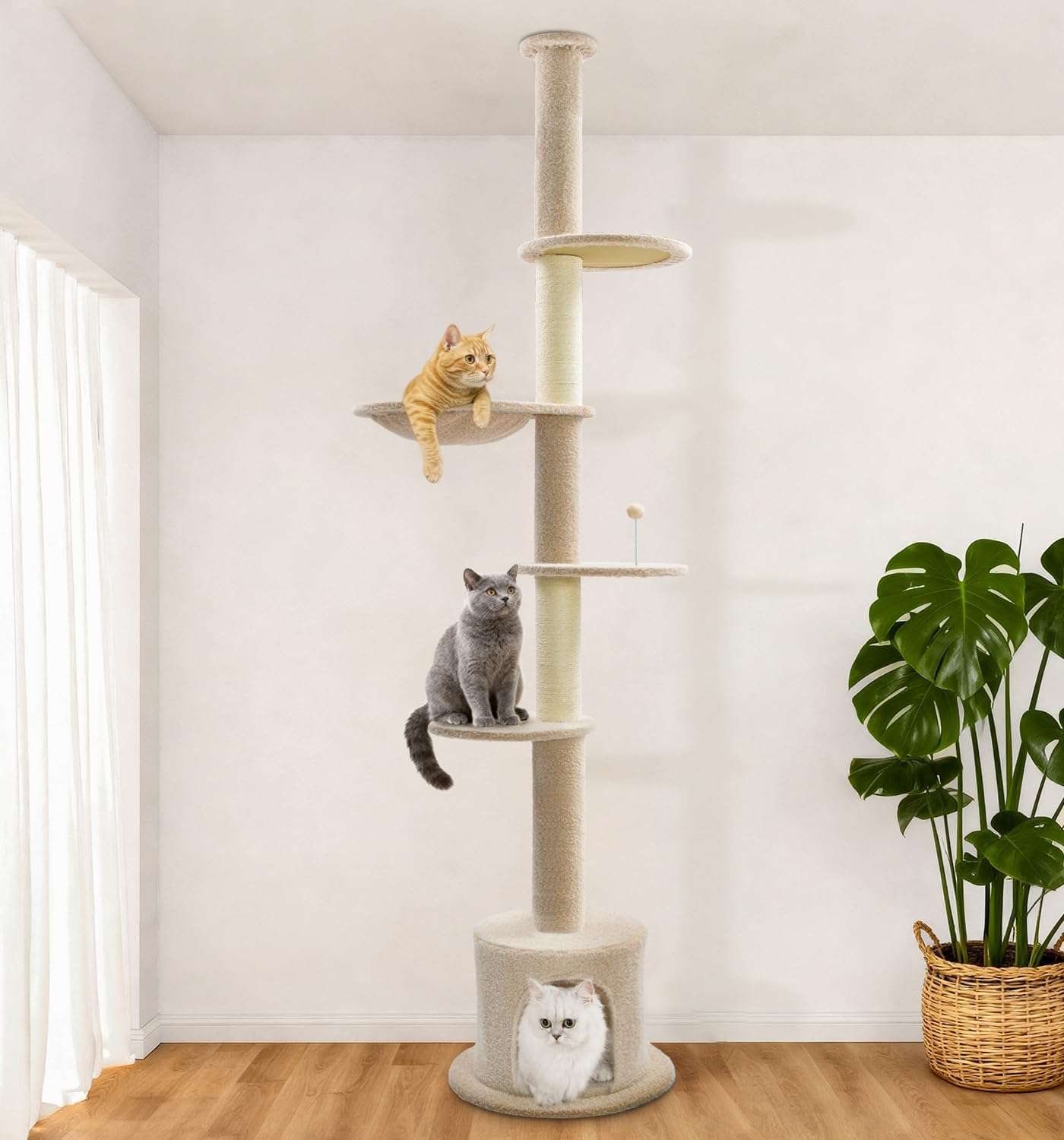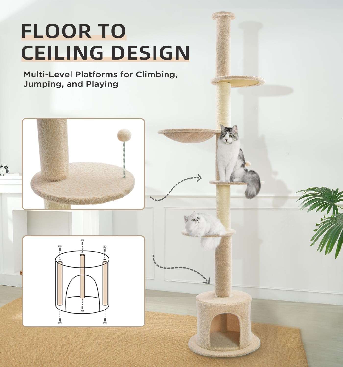 Torre Rascador Techo a Piso: Ajuste Sin Perforaciones y Firmeza Total para Gatos Grandes.