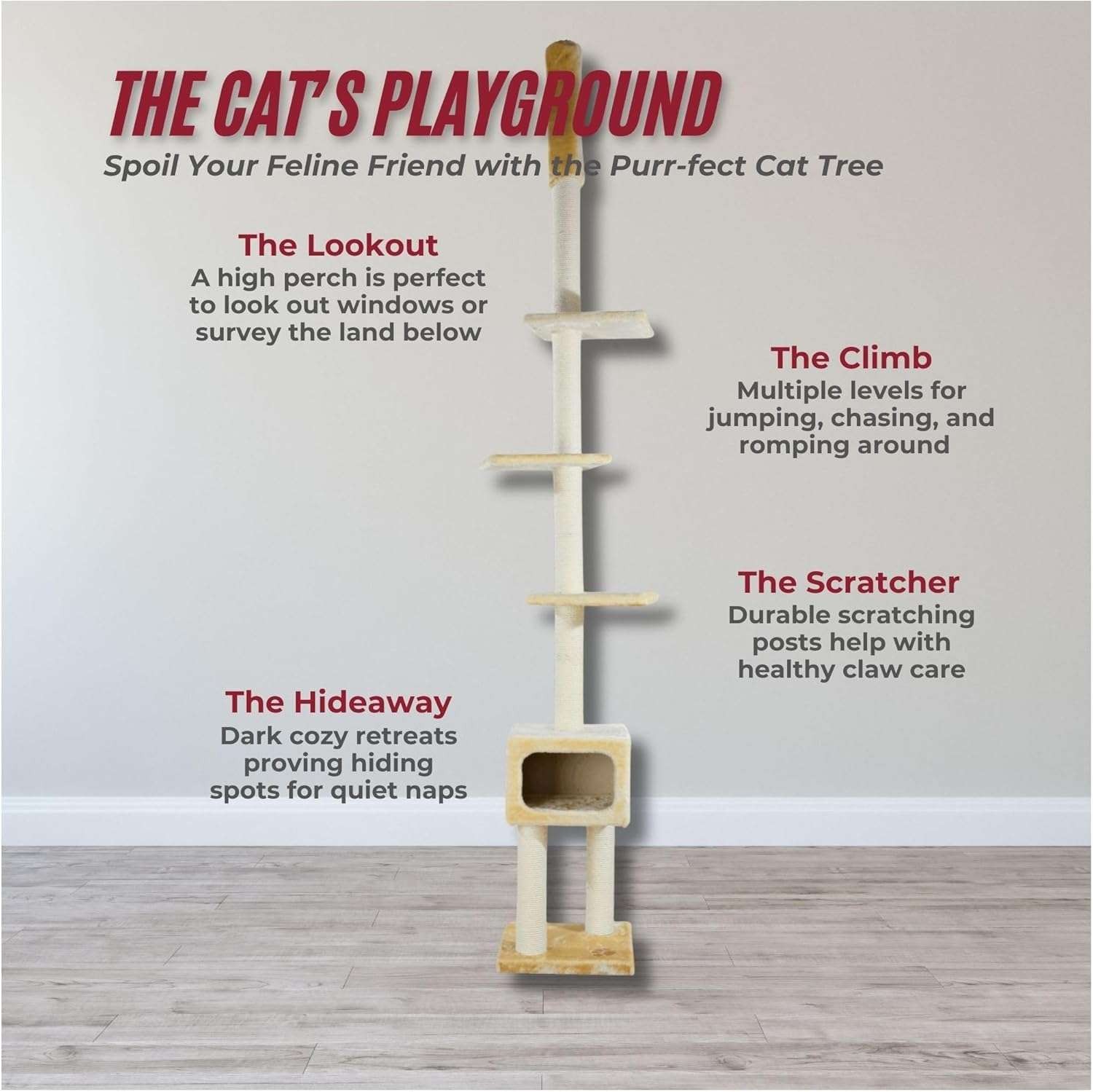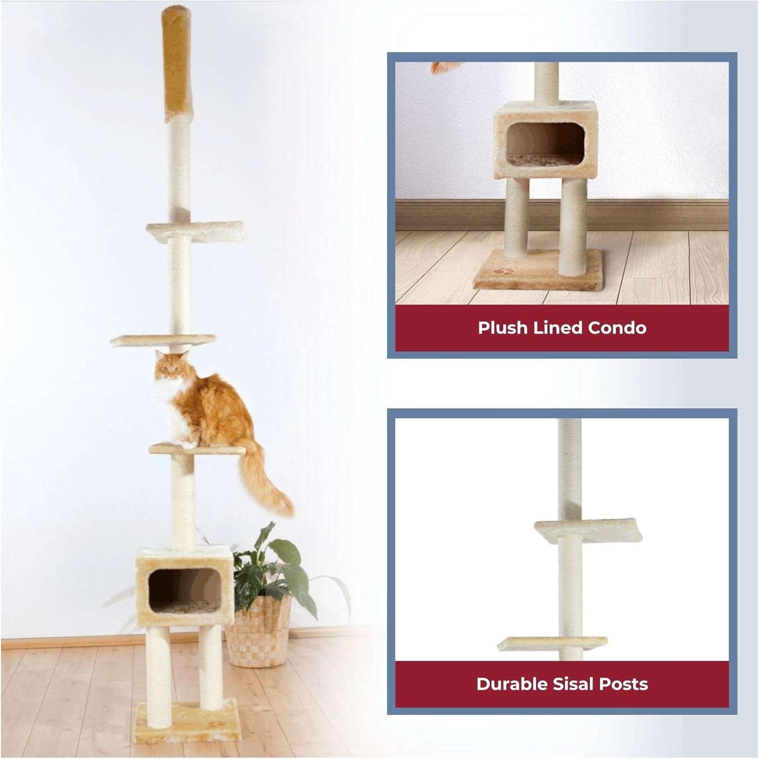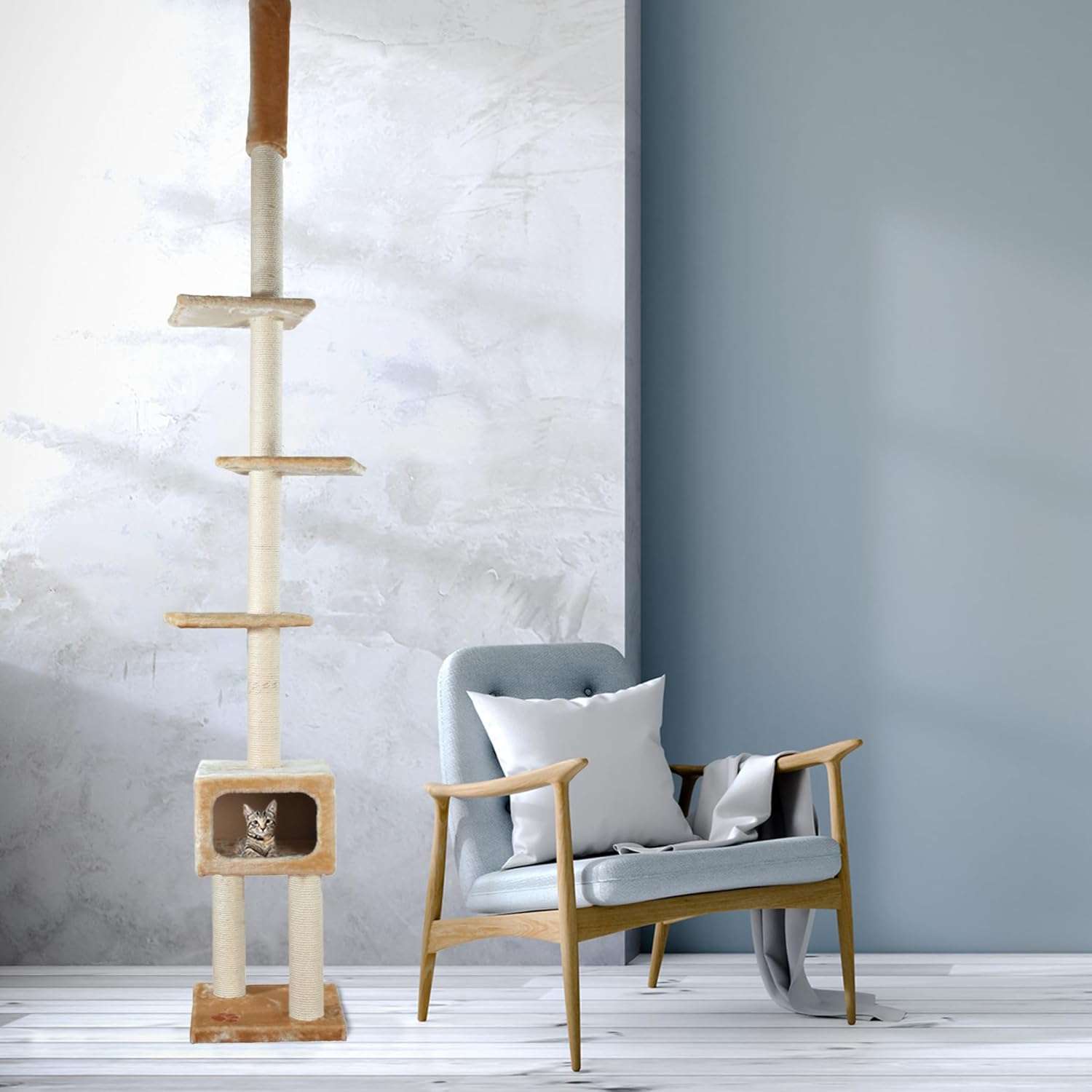 Torre Rascador Techo a Piso: Firmeza y Altura Ajustable para Gatos Grandes.