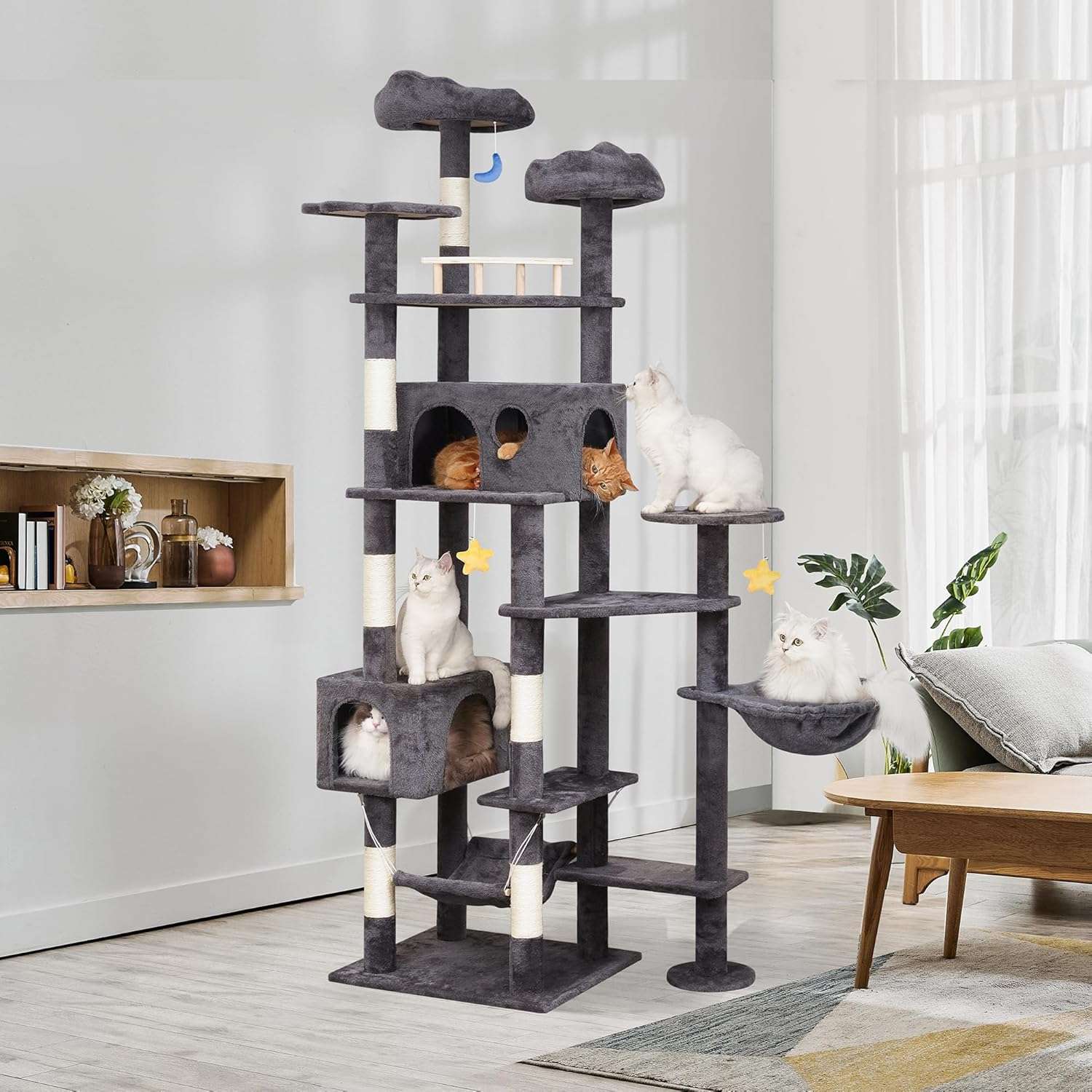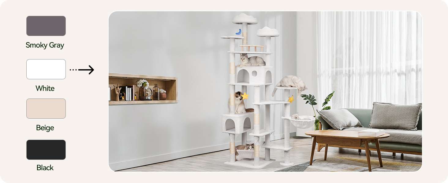 Este árbol alto para gatos añade un toque de fantasía a su hogar, funcionando como un centro de mesa elegante y un refugio seguro para sus amigos felinos.