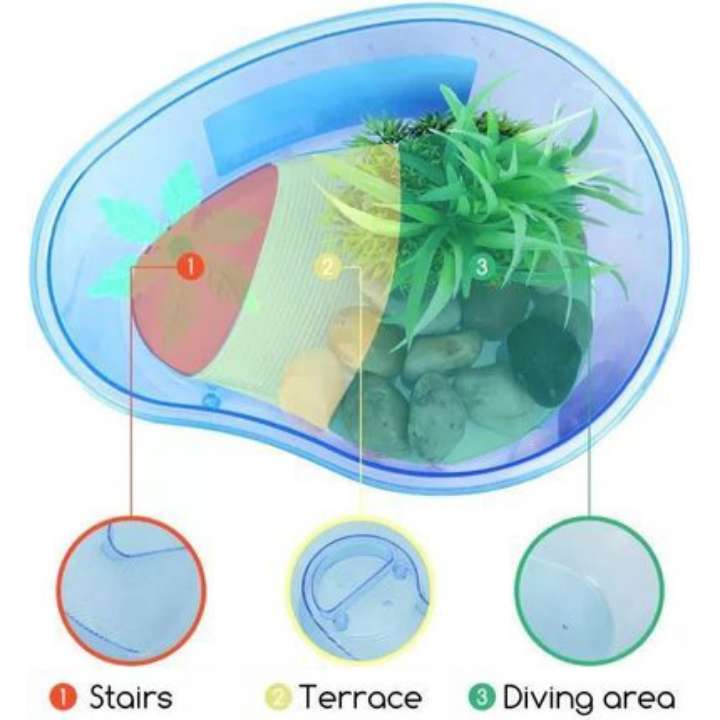 Zona de Nado y Descanso El espacioso interior permite que tu tortuga nade y se mueva con total libertad Incorpora una practica plataforma de escalada antideslizante y una terraza especial para tomar el sol Estos elementos son fundamentales para fomentar su actividad fisica y replicar su comportamiento en la naturaleza manteniendo a tu animal activo y sano