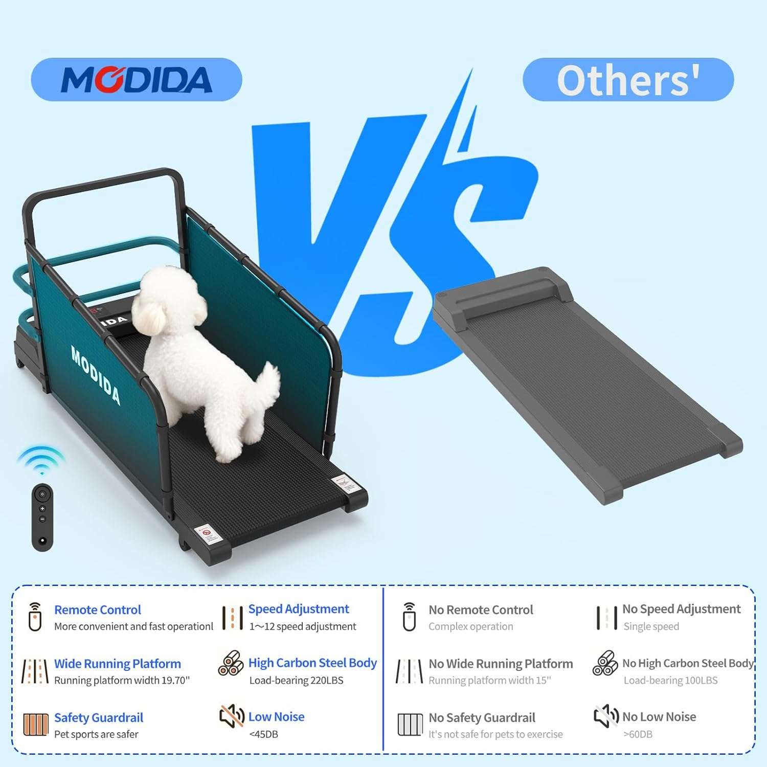 Transforma la rutina de tu mascota con una máquina diseñada para la seguridad y el rendimiento. Ideal para días de lluvia, frío o para dueños con poco tiempo, esta trotadora permite desde una rehabilitación suave hasta un entrenamiento cardiovascular intenso, todo dentro de casa y sin ruidos molestos.