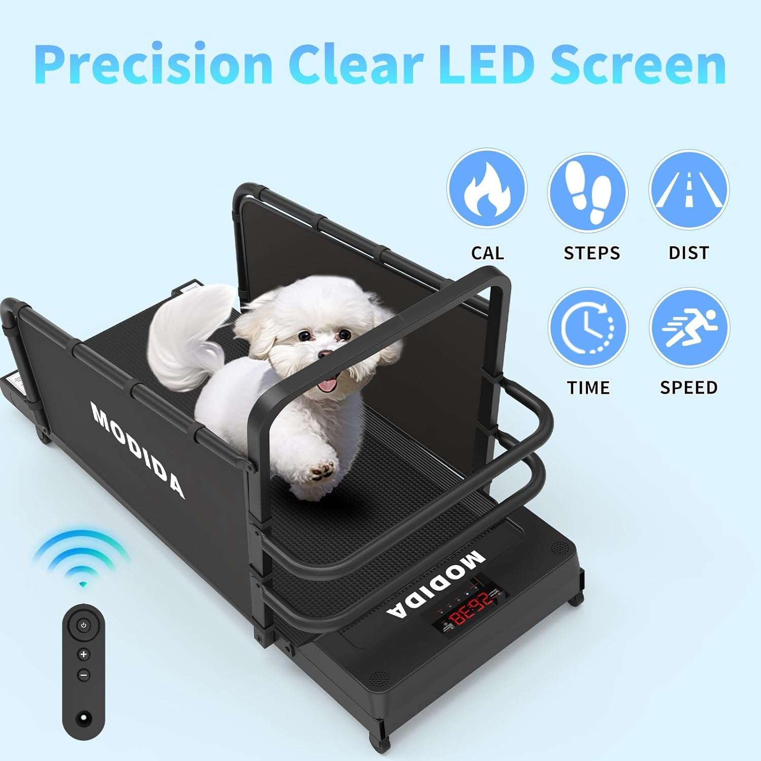 Velocidad Ajustable (1 a 8 km/h) Adapta el ejercicio a la necesidad exacta de tu perro.