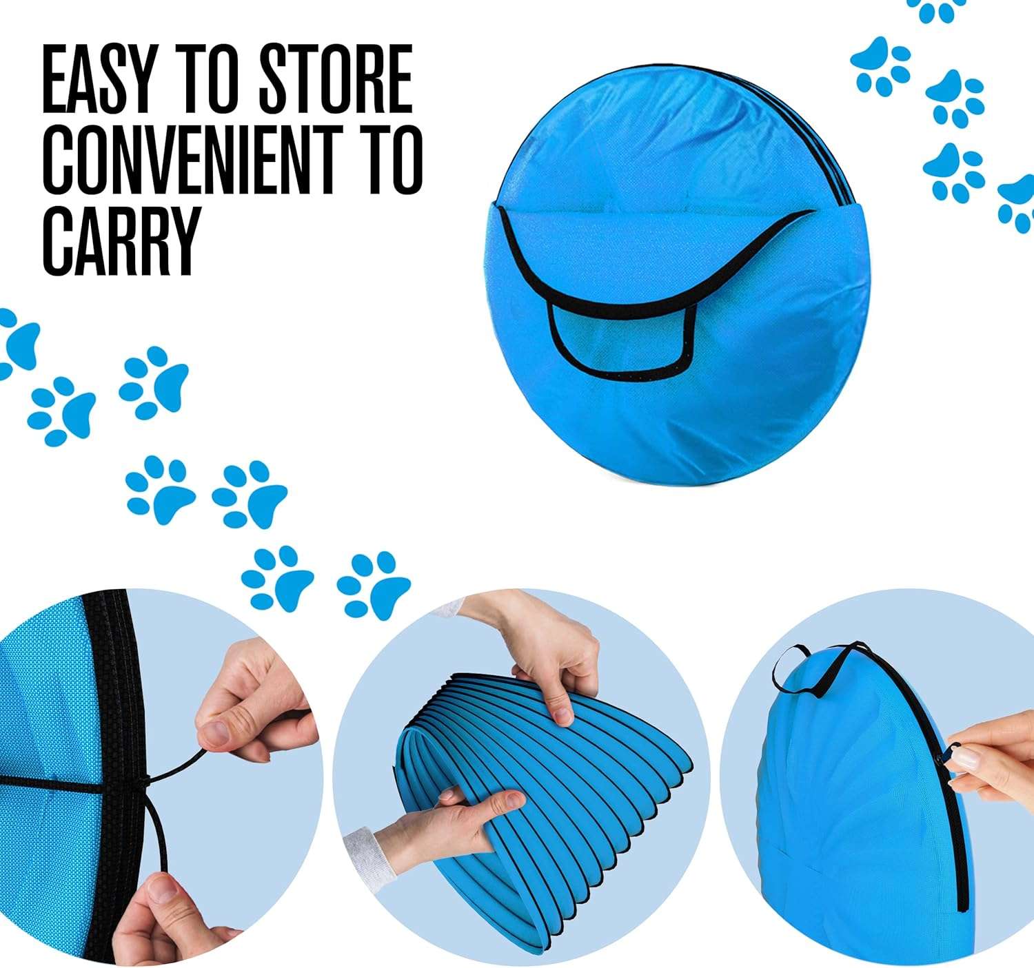 Su diseño es totalmente portátil e incluye una funda de transporte circular con asas dobles de nailon negro para un traslado sin ningún esfuerzo El túnel emergente se expande instantáneamente a toda su longitud de 548 centímetros al sacarlo de la caja y se pliega rápidamente al terminar permitiendo su uso tanto en el interior de la casa como en exteriores playas o su parque favorito