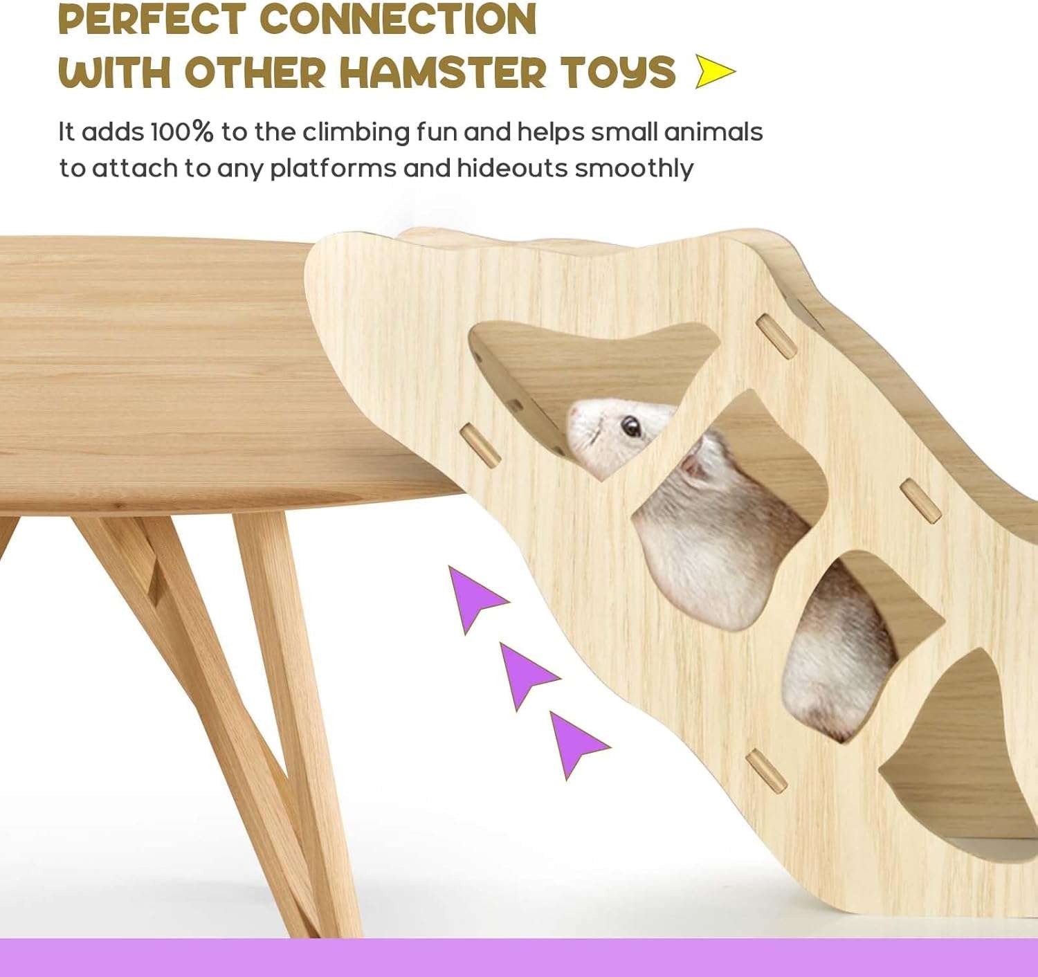 Túnel especial de escondite de hámster: la dimensión de la escalera de hámster escalador es de alrededor de 17.3 x 7.7 x 3.8 pulgadas, perfecta para que los hámsters se escondan, suban y duerman. La escalera del túnel del hámster es ideal para conectar con las cabañas de hámster, la plataforma de hámster o la casa del hámster. Asegúrate de que tu jaula de hámster sea lo suficientemente grande para colocar la escalera.