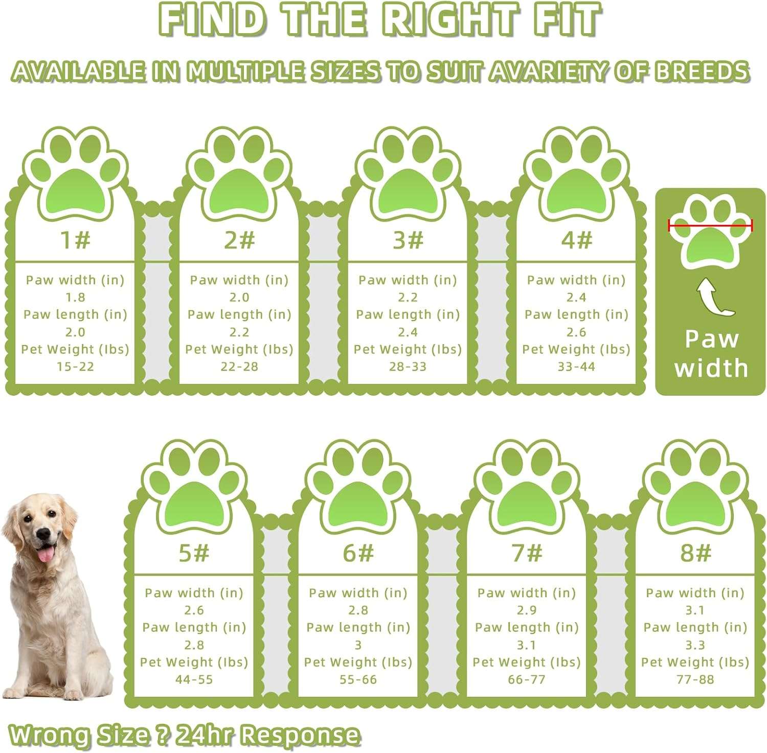 Instrucciones: Mide el Ancho de la pata de tu perro pisando un papel (con todo su peso). Elige la talla basándote en el ancho.