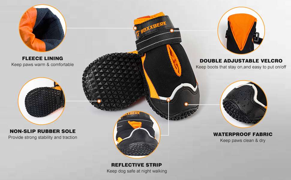 Exterior Impermeable: Mantén las patas de tu perro secas, limpias y cálidas en días de lluvia, barro o nieve.